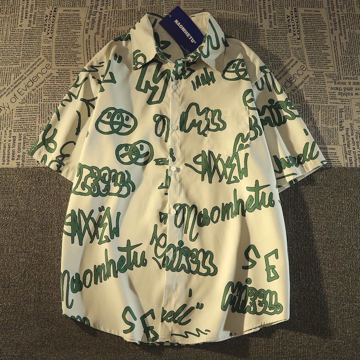 아메리칸 스타일 레트로 홍콩 스타일 낙서 짧은 소매 셔츠 여성의 2025 새로운 느슨한 게으른 스타일 우아한 프랑스 스타일 셔츠 탑스토어 가기