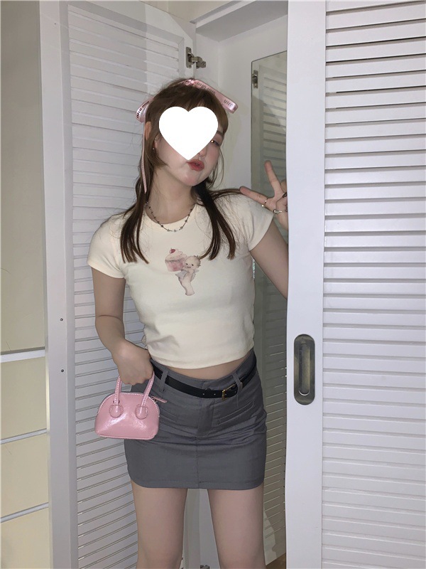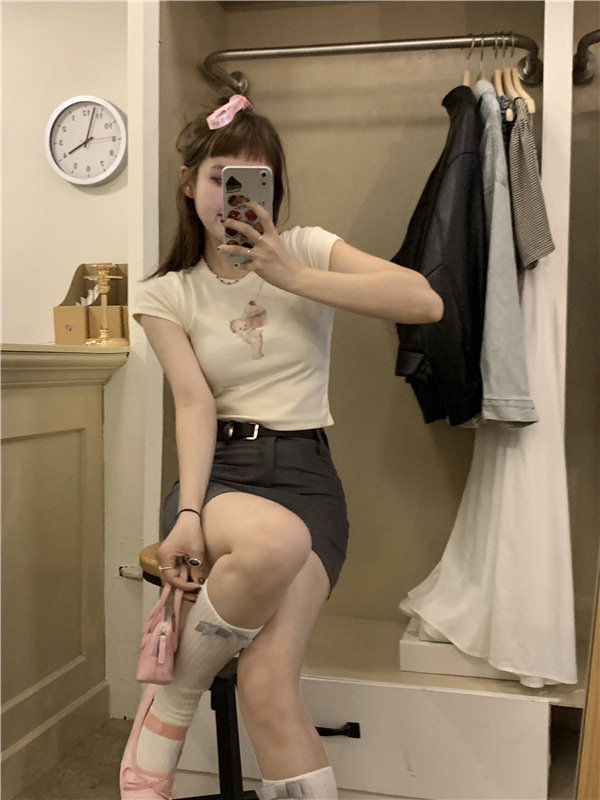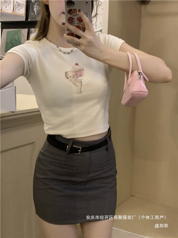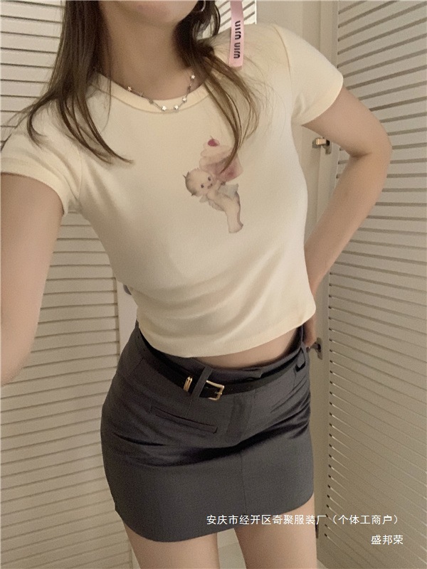 2025 여름 티셔츠 세트 미국 어깨 슬림 최고 계절 뜨거운 소녀 스커트 짧은 소매 플러스 사이즈 통통한 봄 디자인 작은스토어 가기