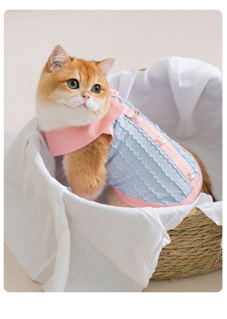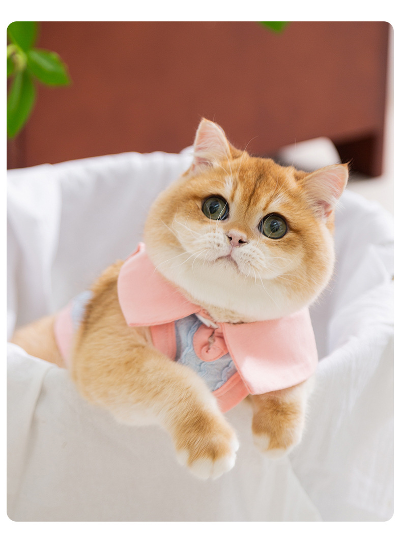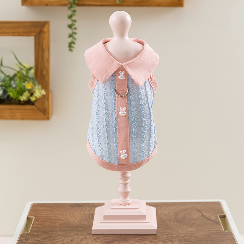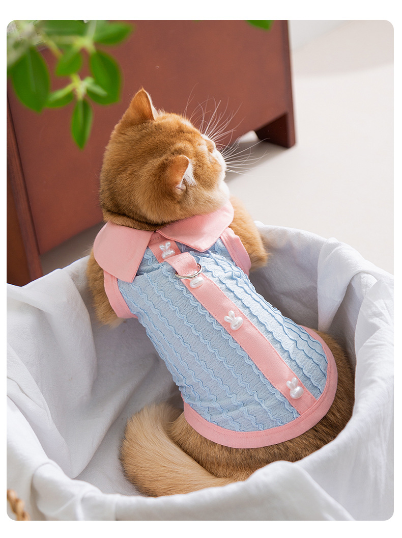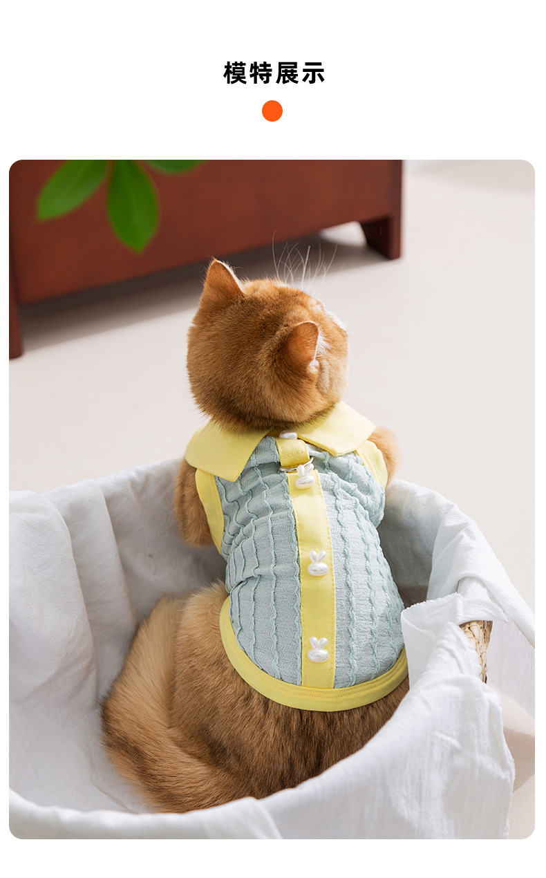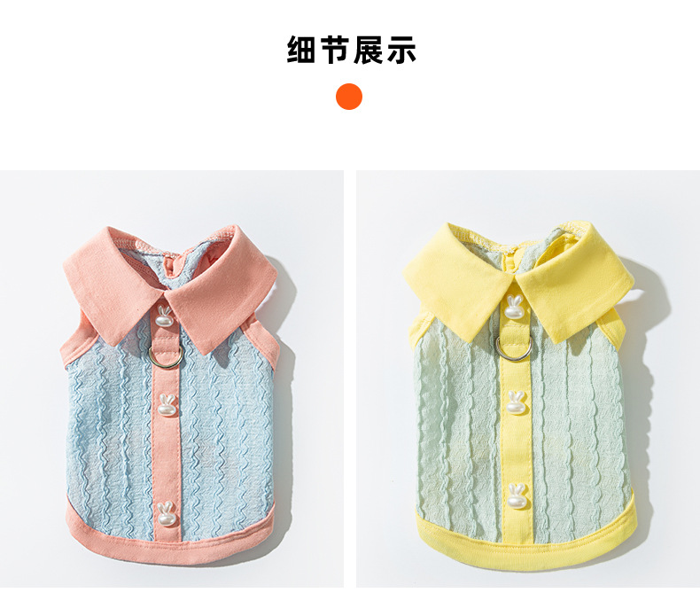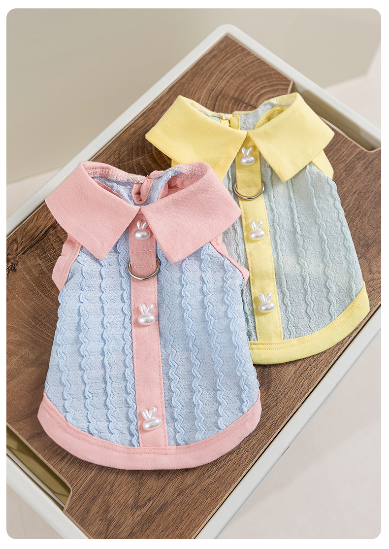 키티 봄과 여름 자카드 니트 폴로 칼라 대조 두 다리 조끼 개 중소 개 테디 애완 동물 옷스토어 가기