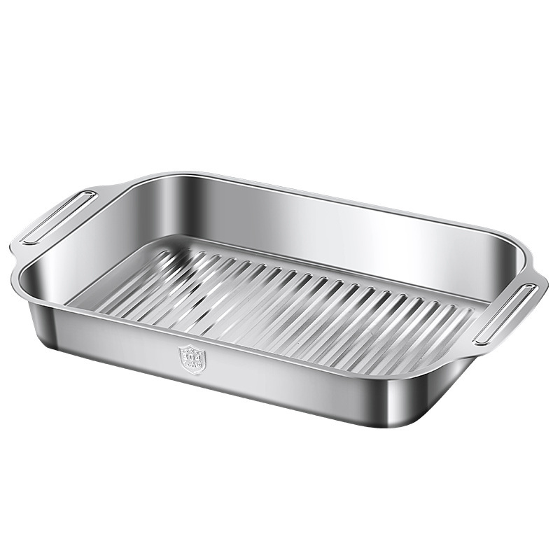 두꺼운 스테인레스 스틸 구운 어판 직사각형 가정 유도 쿠커 트레이 상업용 딥 플레이트 가재 구이 어판 도매