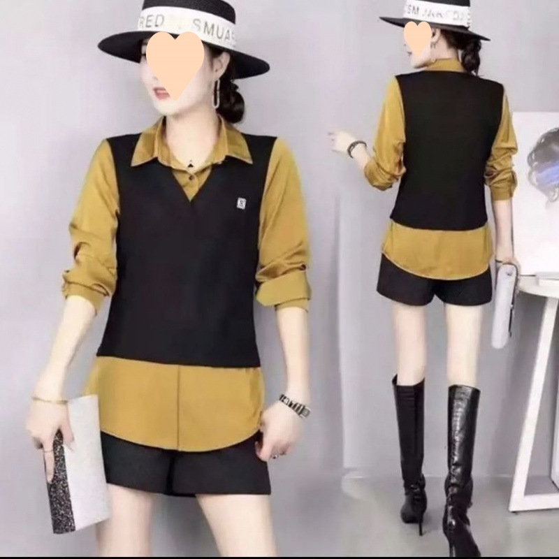 가짜 투피스 셔츠 여성용 경량 가을 새 스타일 탑 루즈 슬리밍 엄마의 플러스 사이즈 스타일러베이스 셔츠스토어 가기