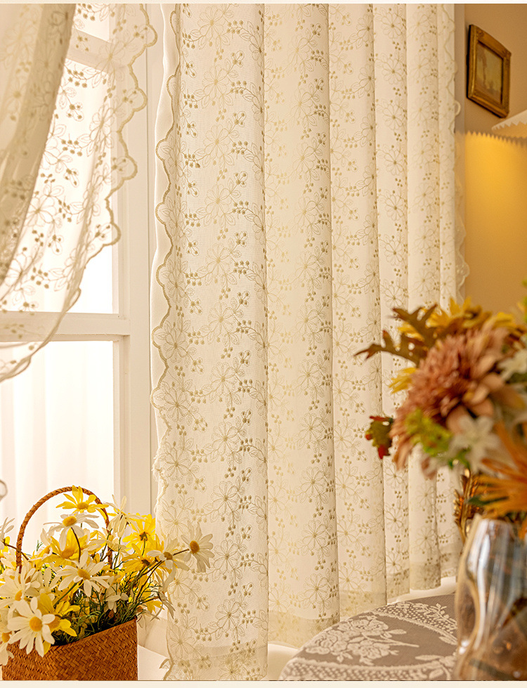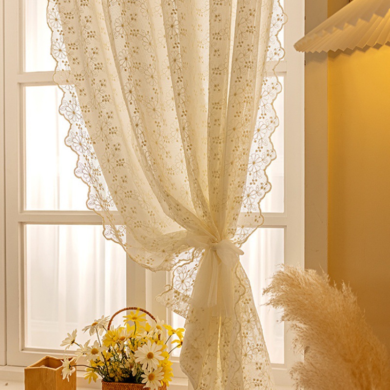 프랑스 새로운 도착 나비 꽃 커튼 침실 그늘 펀치 프리 거즈 커튼 스타일 슈퍼 요정 빛-투명 레이스 더블 레이어 커튼