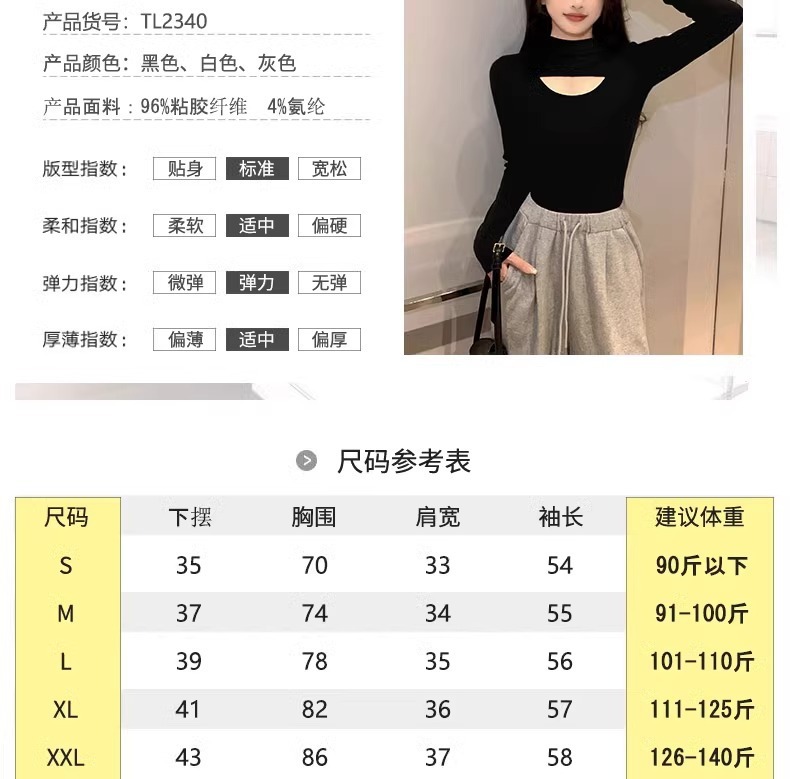 블랙 스레드 세미 하이 칼라 프론트 할로우 슬림 핏 긴팔 2024 새로운베이스 셔츠 여성의 가을과 겨울 로우 칼라 이너 탑