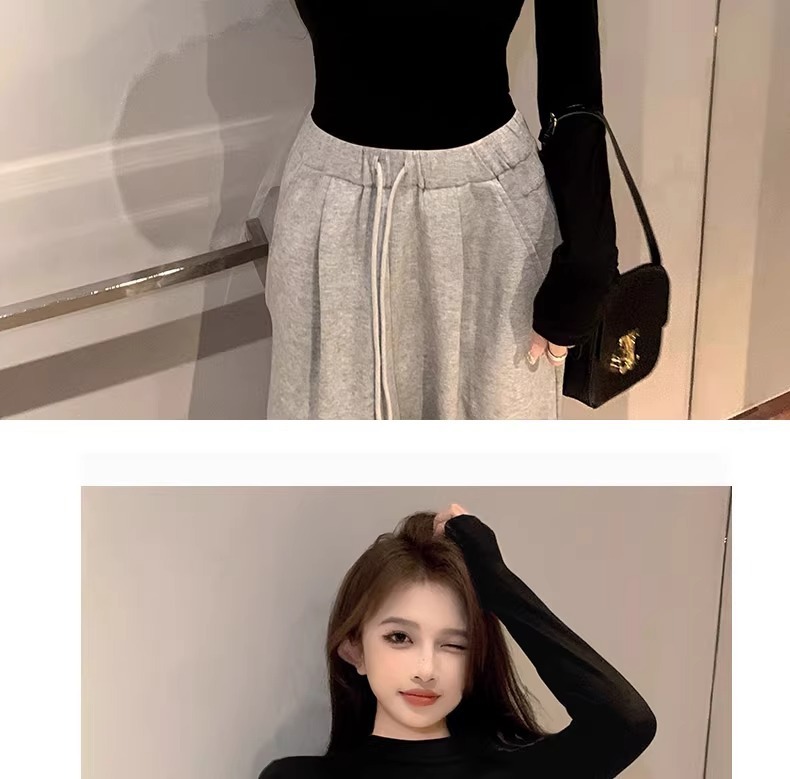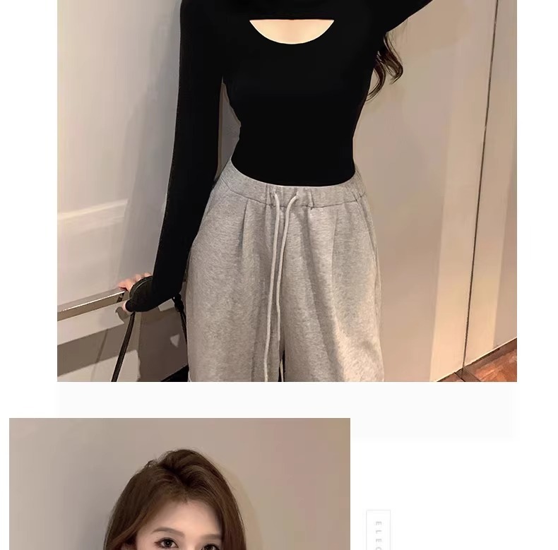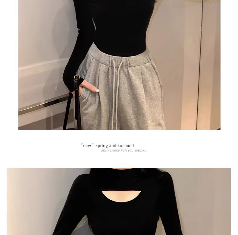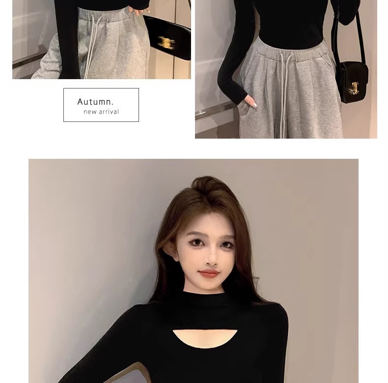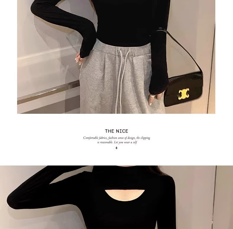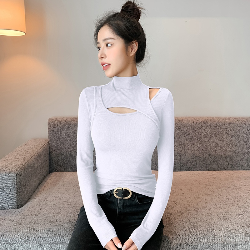 블랙 스레드 세미 하이 칼라 프론트 할로우 슬림 핏 긴팔 2024 새로운베이스 셔츠 여성의 가을과 겨울 로우 칼라 이너 탑스토어 가기