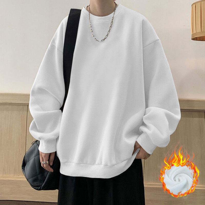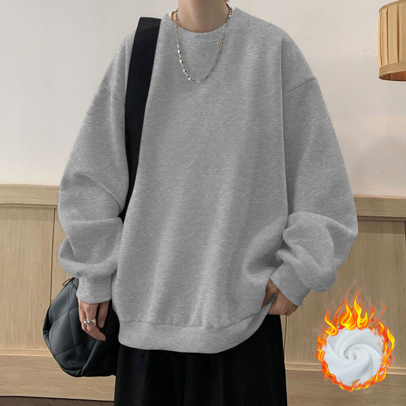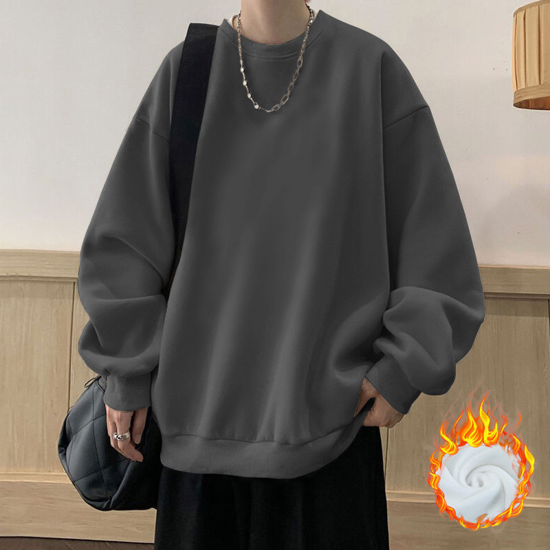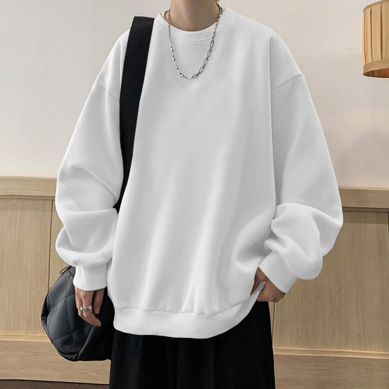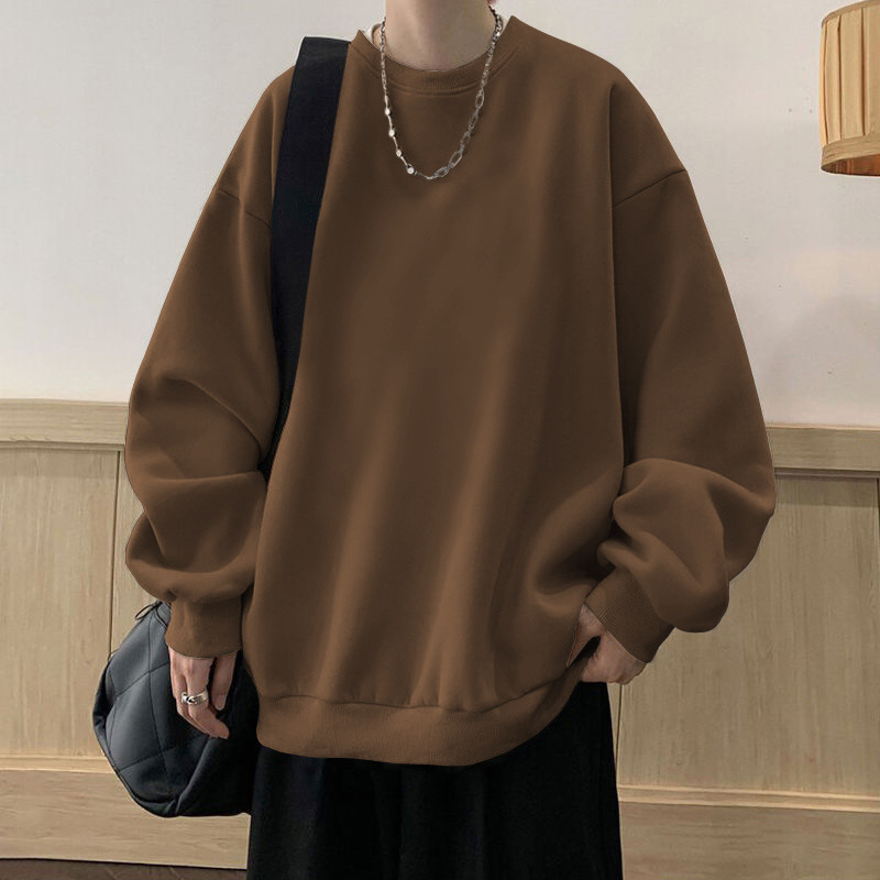 봄과 가을면 풀오버 스웨터 남성용 트렌디 브랜드 인기 느슨한 플러스 사이즈 탑 재킷 미국 스타일의 기모 베이스 셔츠