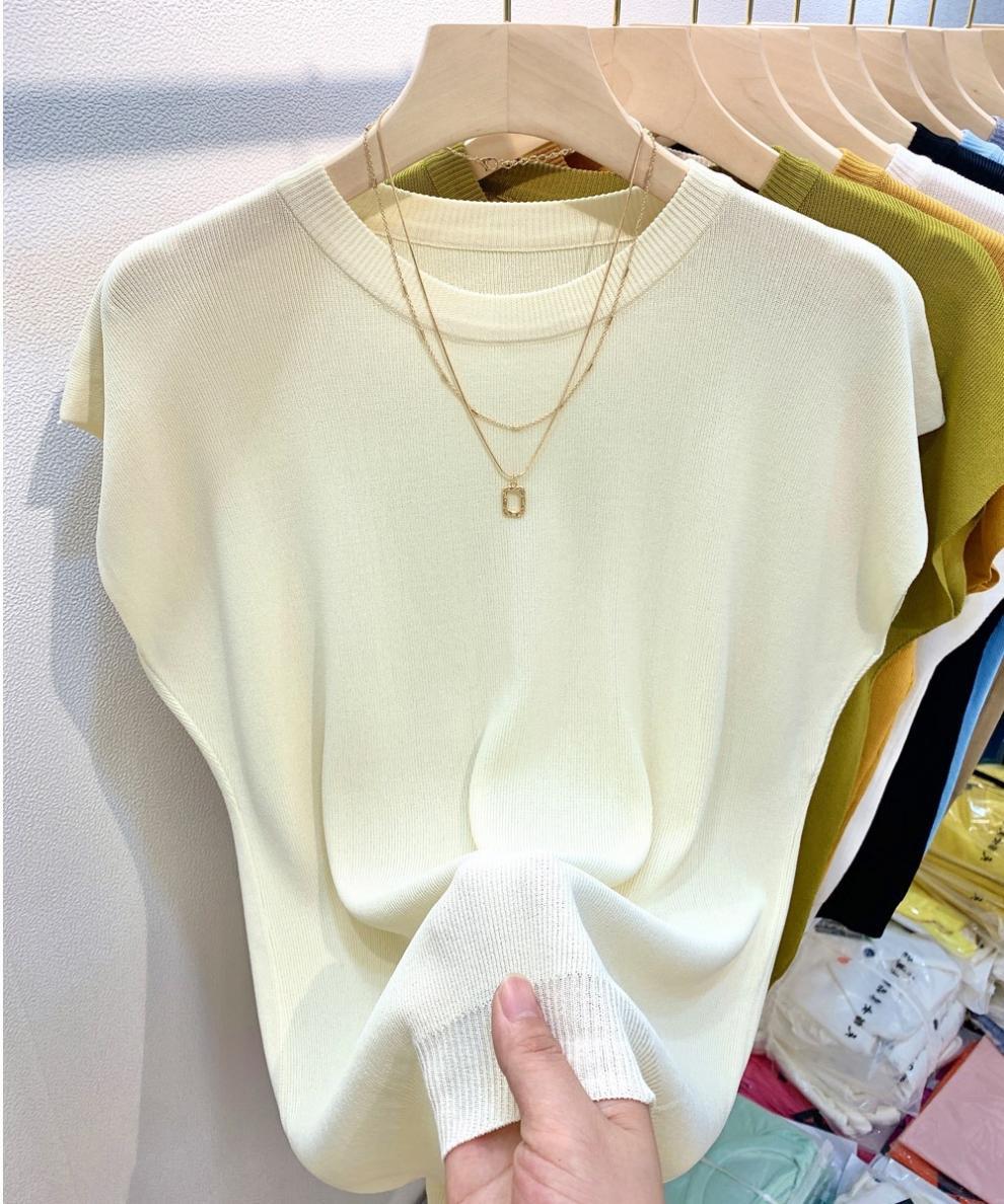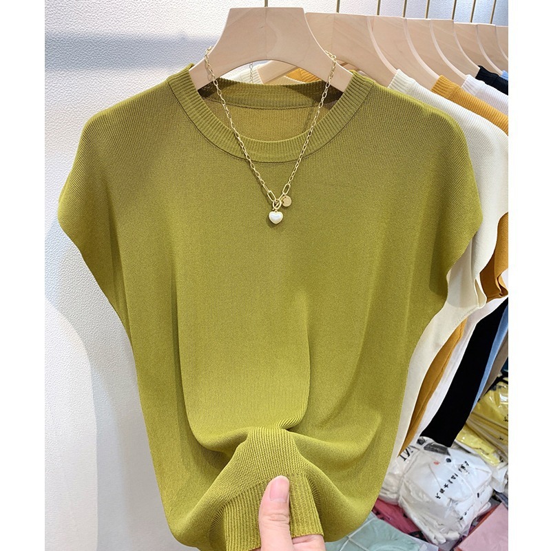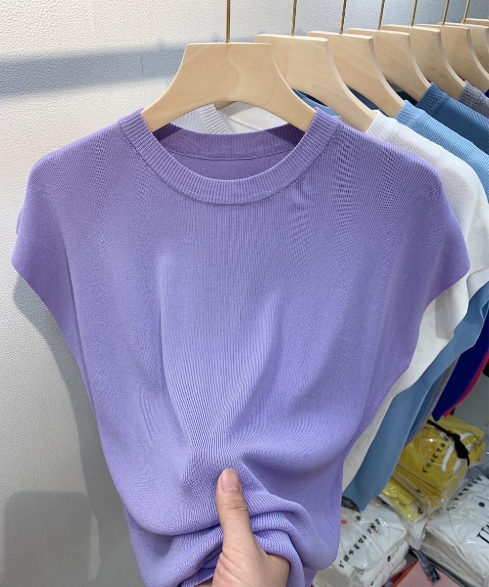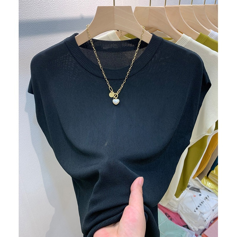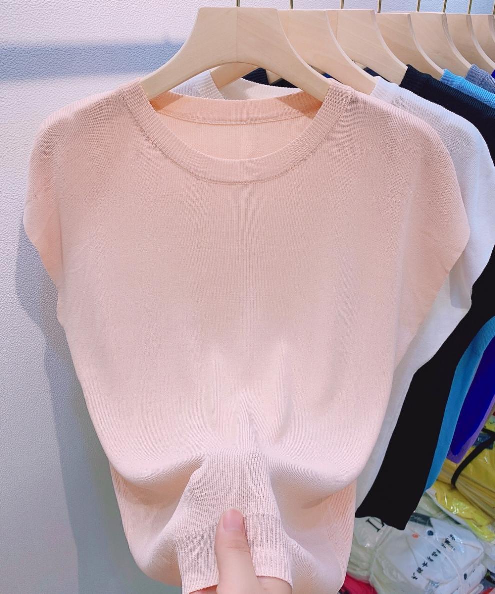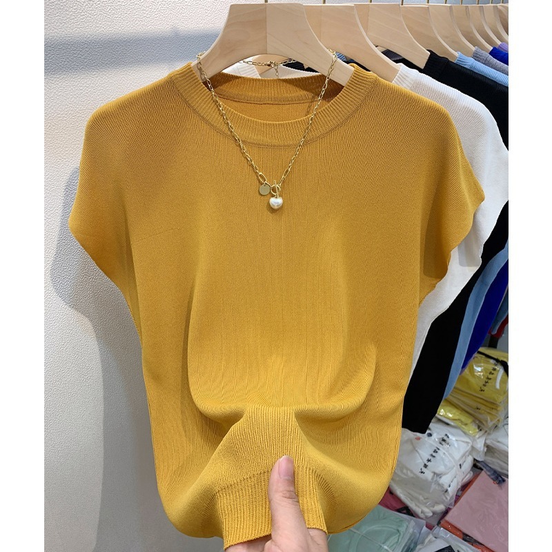 여름 얇은 아이스 실크 니트 셔츠 여성용 반소매 로얄 자매 스타일 티셔츠 슬림 핏 우아한 나이 감소 레드 반팔 셔츠 얇은스토어 가기