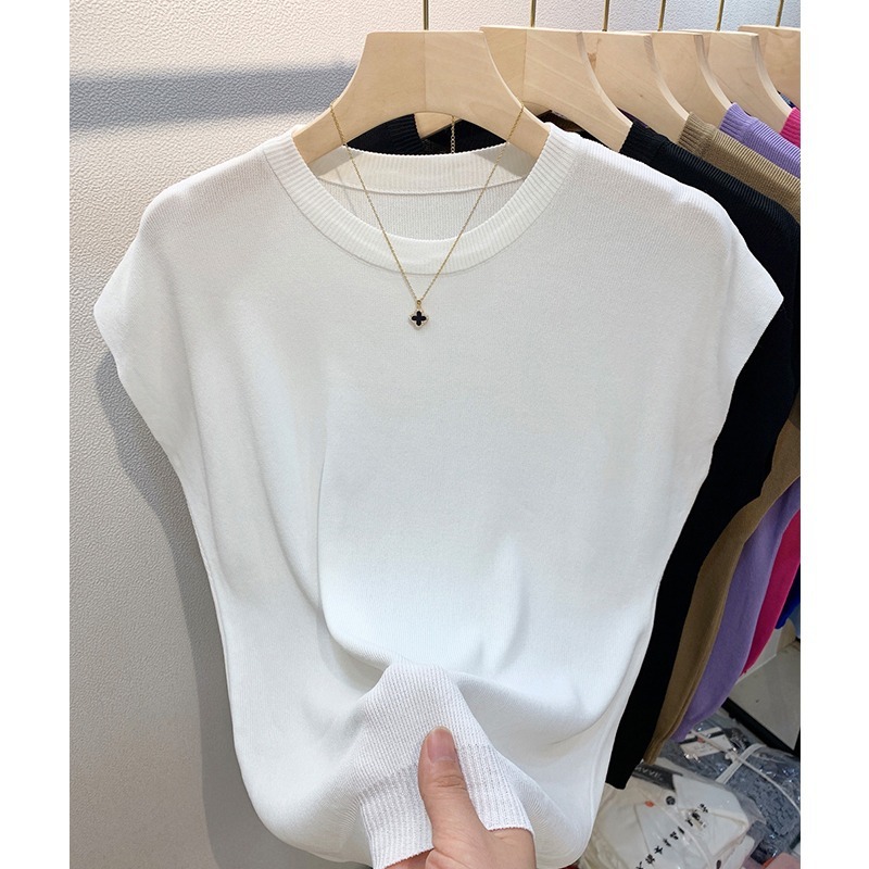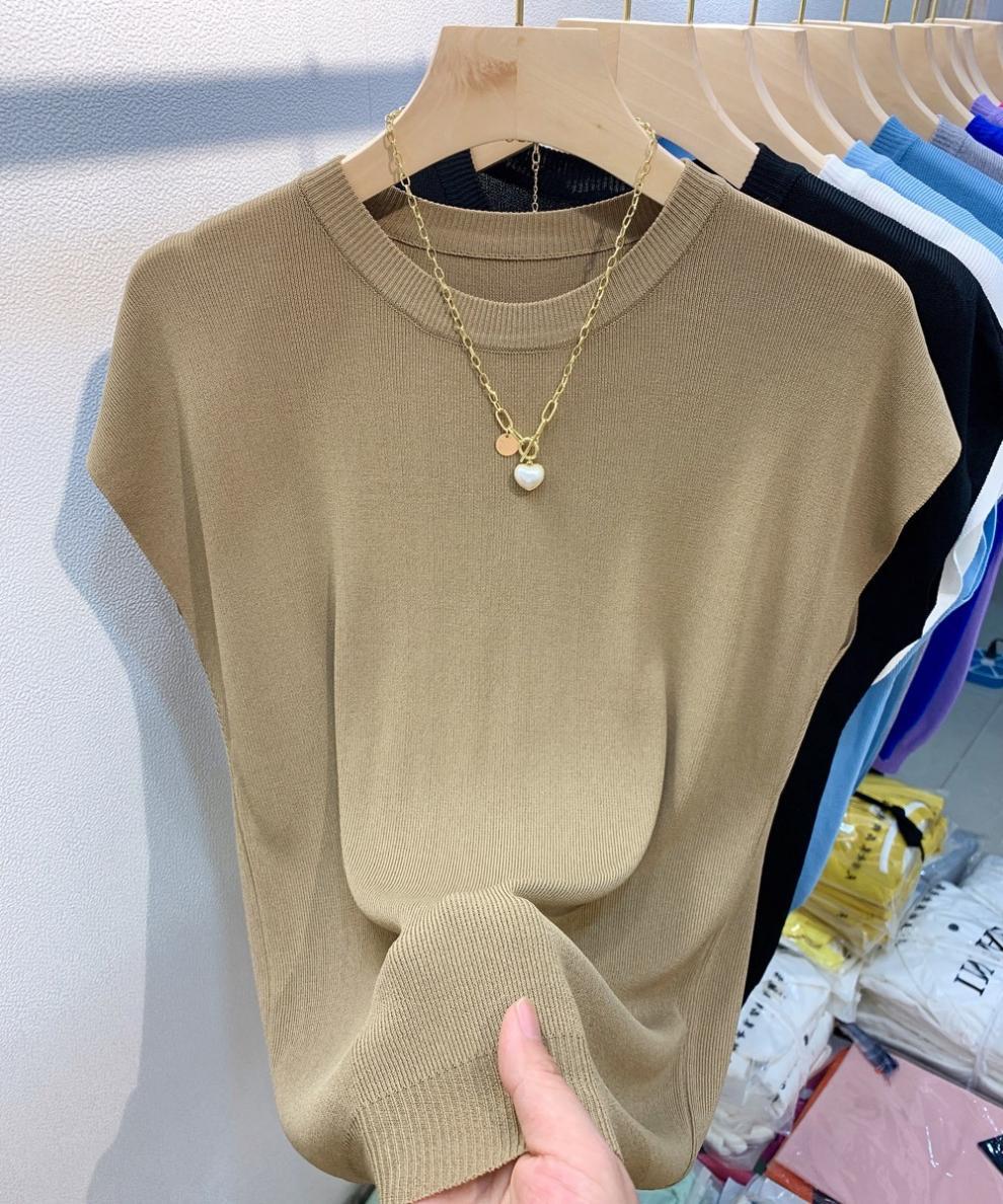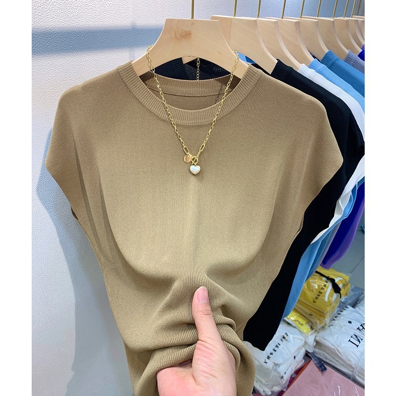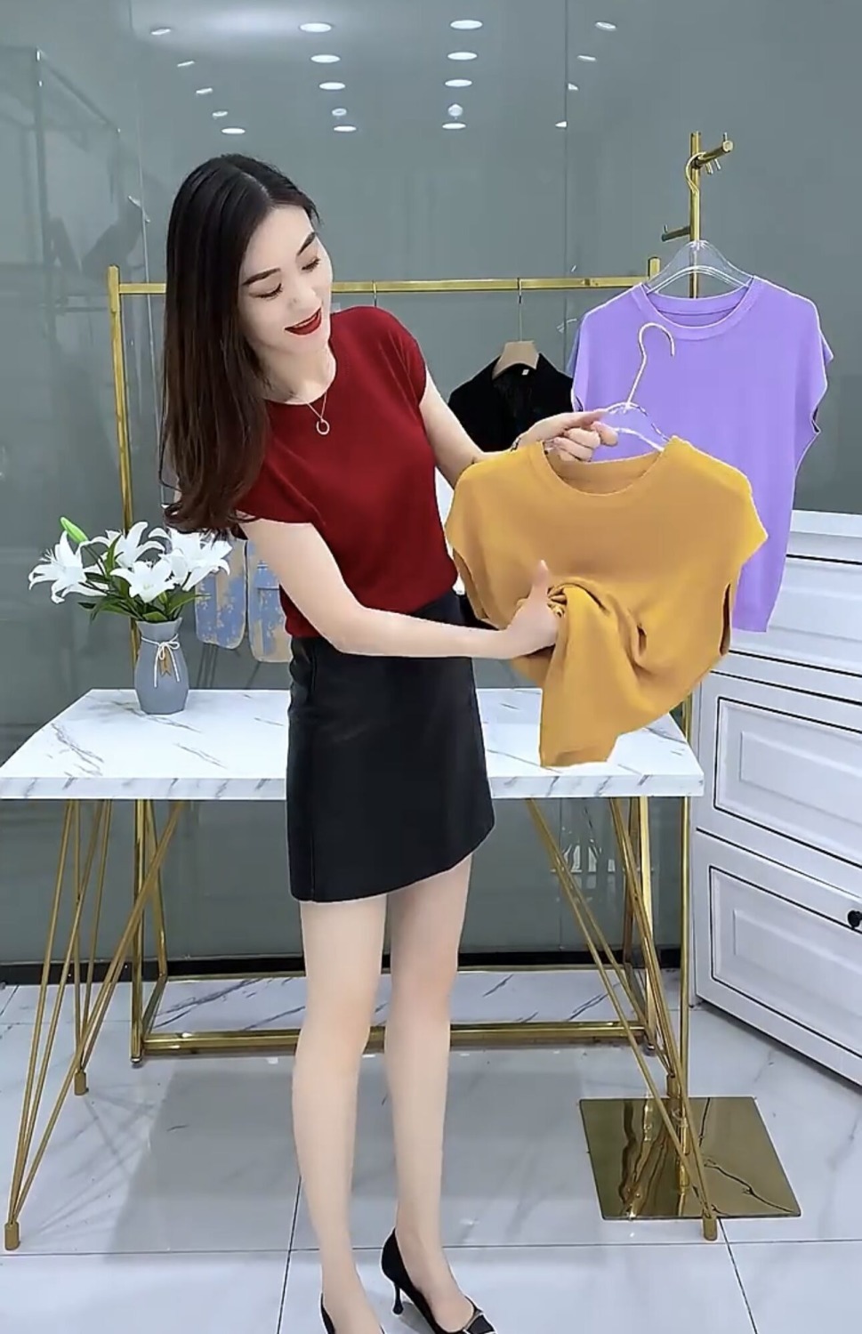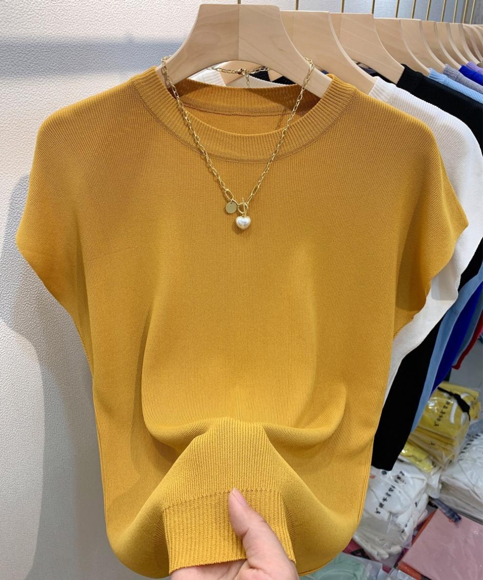여름 얇은 아이스 실크 니트 셔츠 여성용 반소매 로얄 자매 스타일 티셔츠 슬림 핏 우아한 나이 감소 레드 반팔 셔츠 얇은스토어 가기