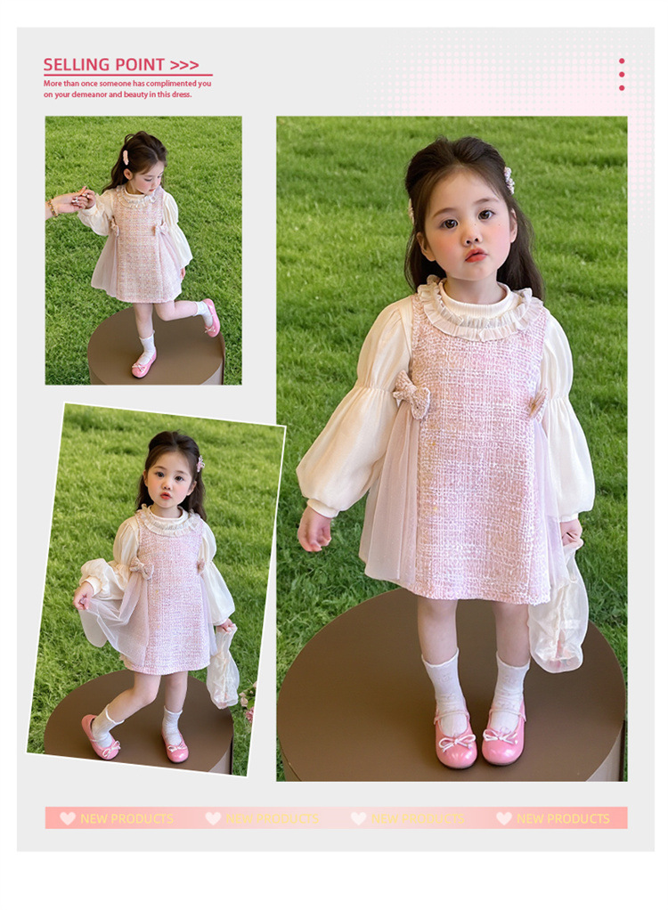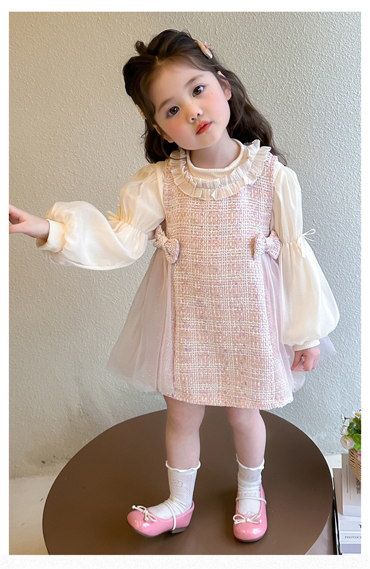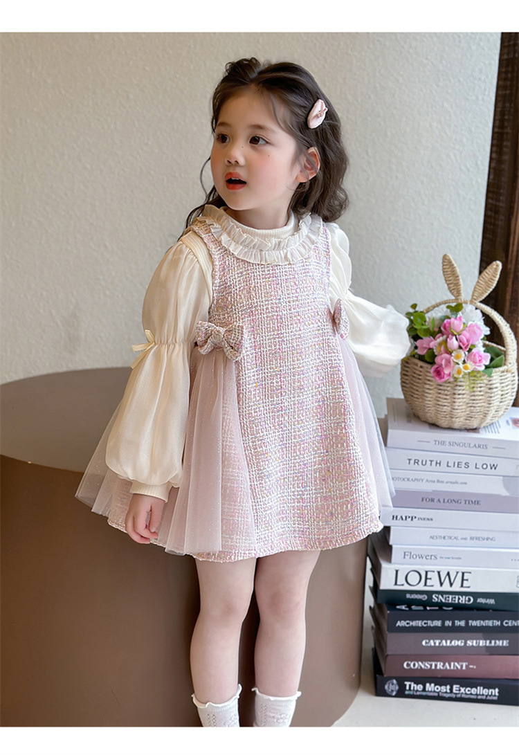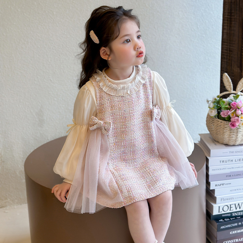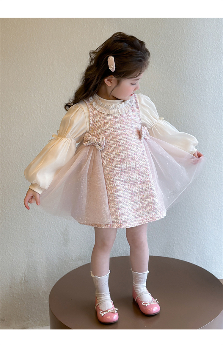 소녀 봄 레이스 조끼 거즈 스커트 투피스 세트 2025 새로운 외국 스타일 작은 향수 공주 원피스 아동복 조수스토어 가기