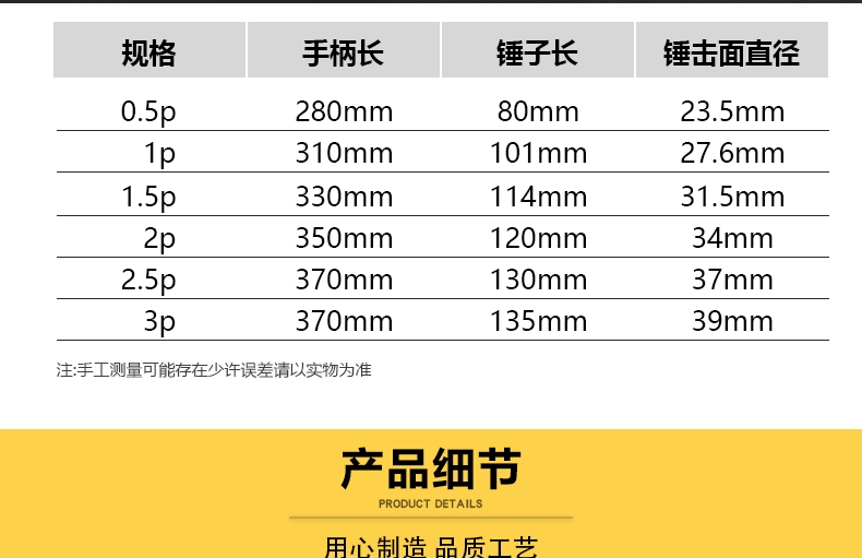 • 2.5LB 나무 손잡이 볼핀 해머