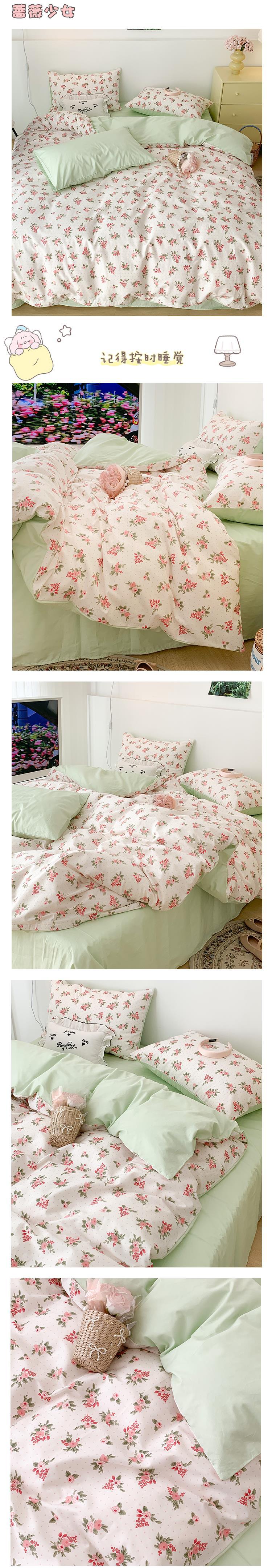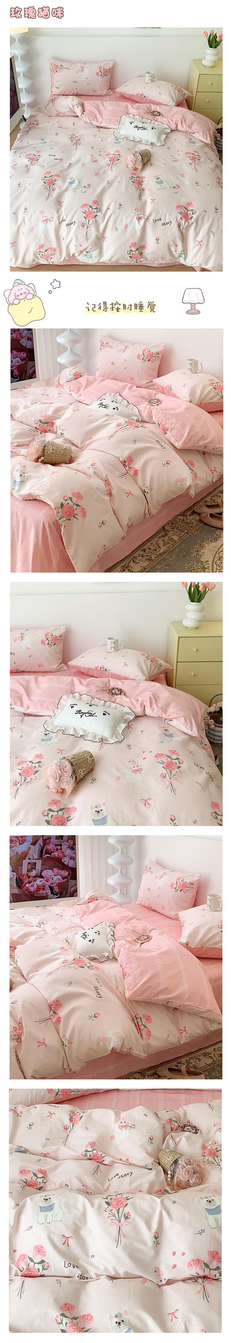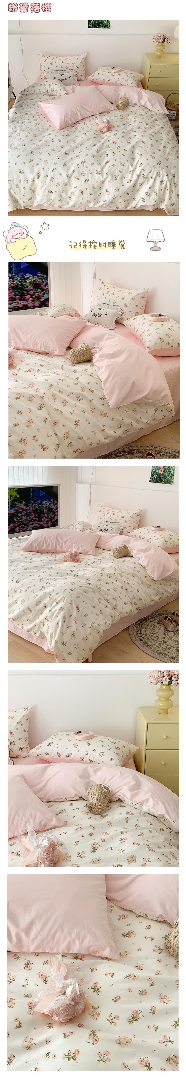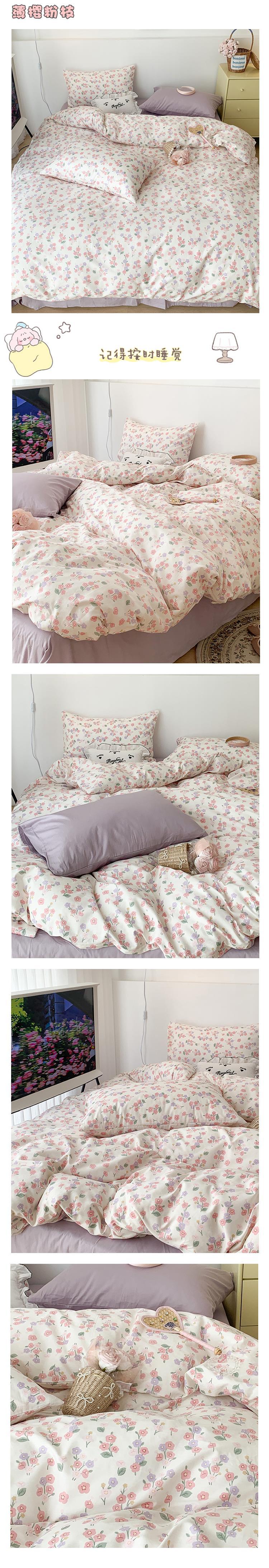 P66D 소녀 심장 작은 꽃 면화 4 조각면 이불 커버 1.5 m1.8 침대 시트 침대 3 피스 세트스토어 가기
