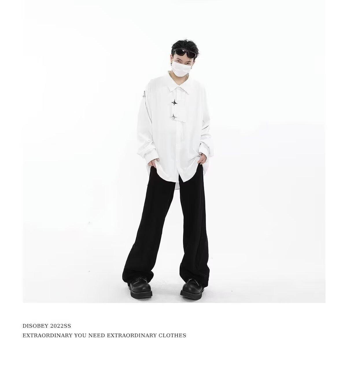2025 새로운 홍콩 스타일 가을과 겨울 남성 긴팔 셔츠 크로스 사이드 스플릿 툴링 지퍼 코트 셔츠 도매스토어 가기