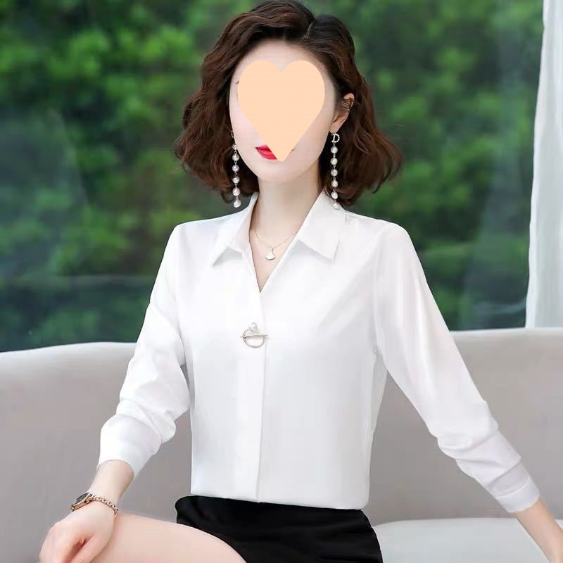 [하이 퀄리티] 화이트 셔츠 여성 봄 · 가을 한국 루즈톱 뉴 플러스 사이즈 여성용 긴슬리베이스 셔츠