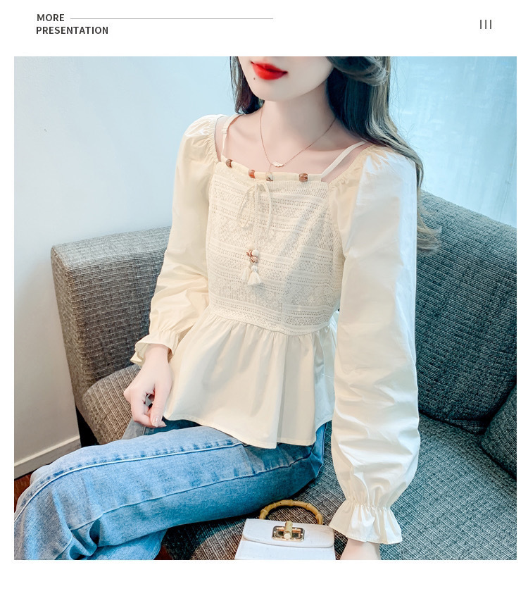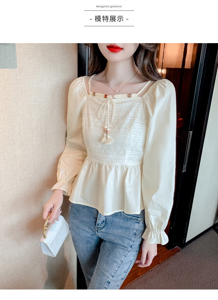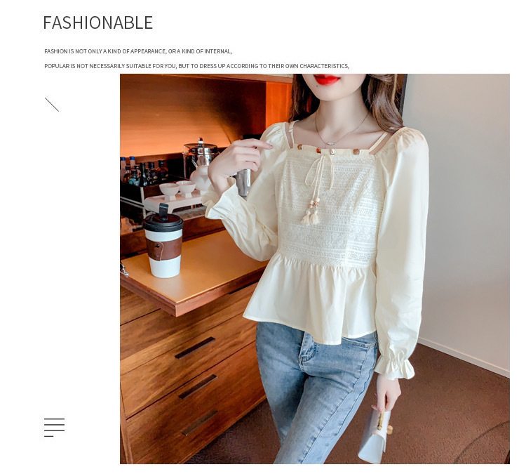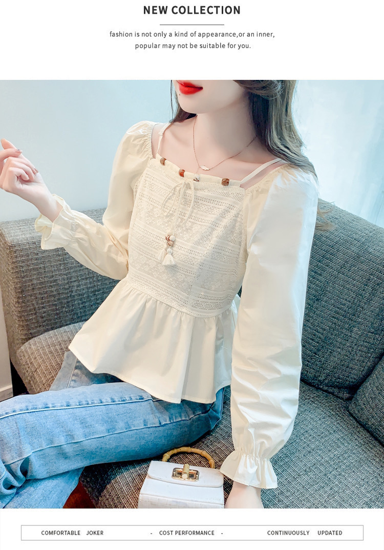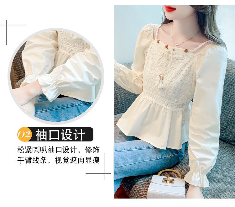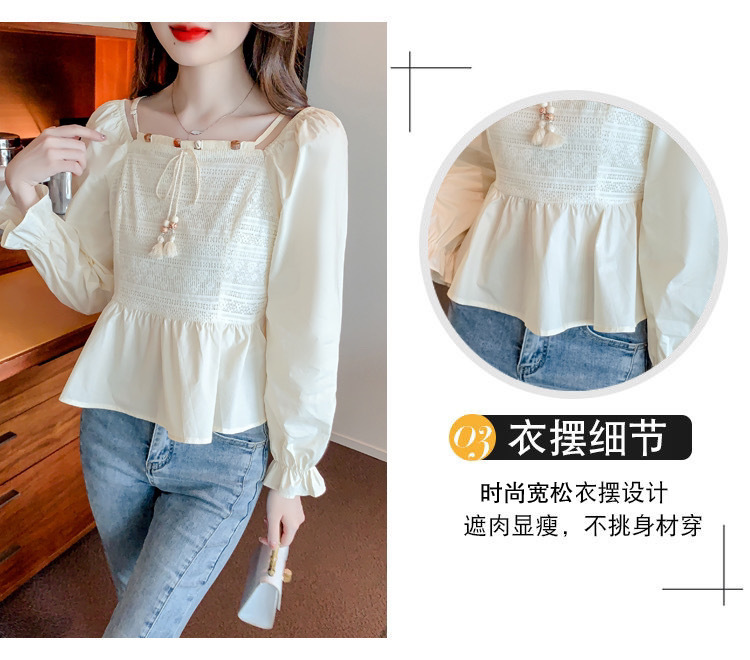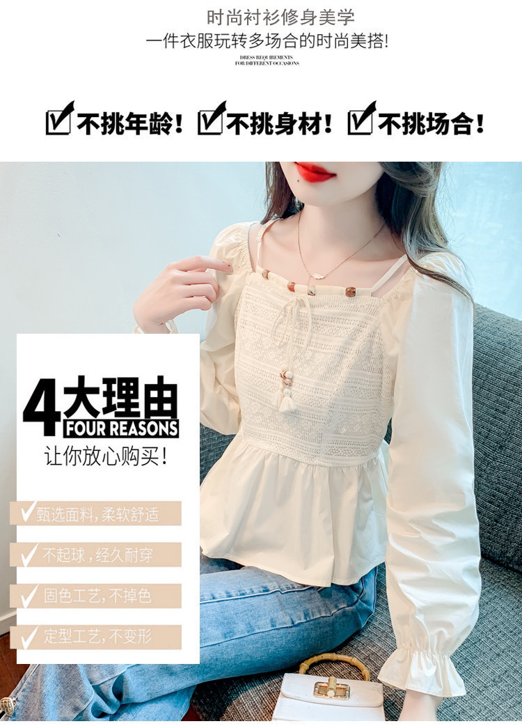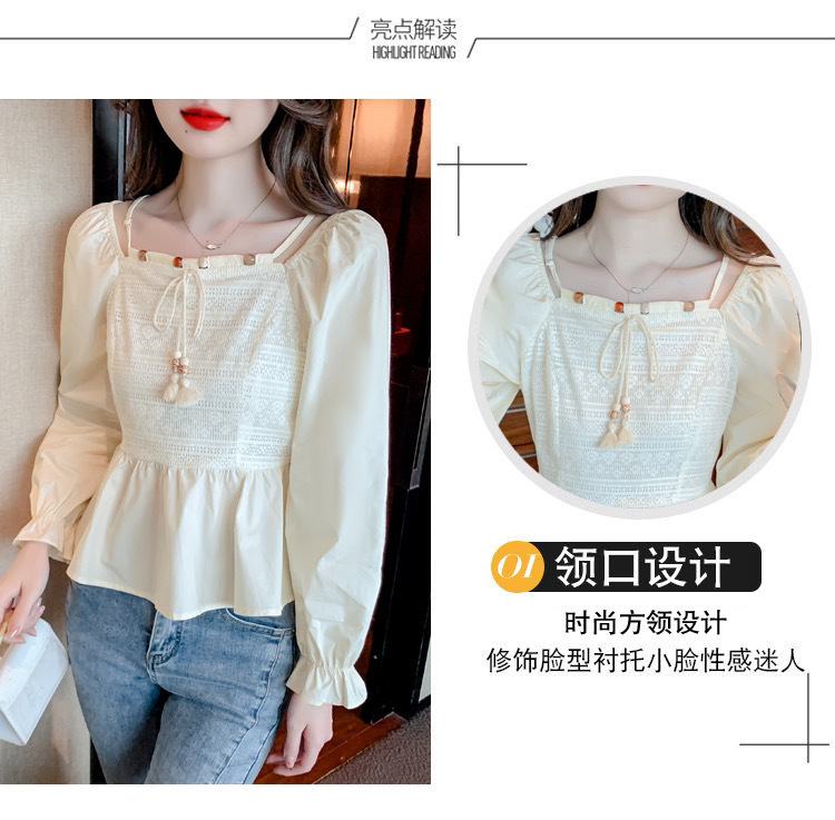 프랑스 스타일 우아한 디자인 센스 스퀘어 칼라 셔츠 여성의 가을 새로운 타이트 허리 슬리밍 혼 긴 소매 세련된 아름다운 탑