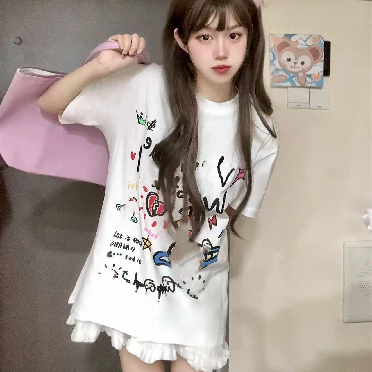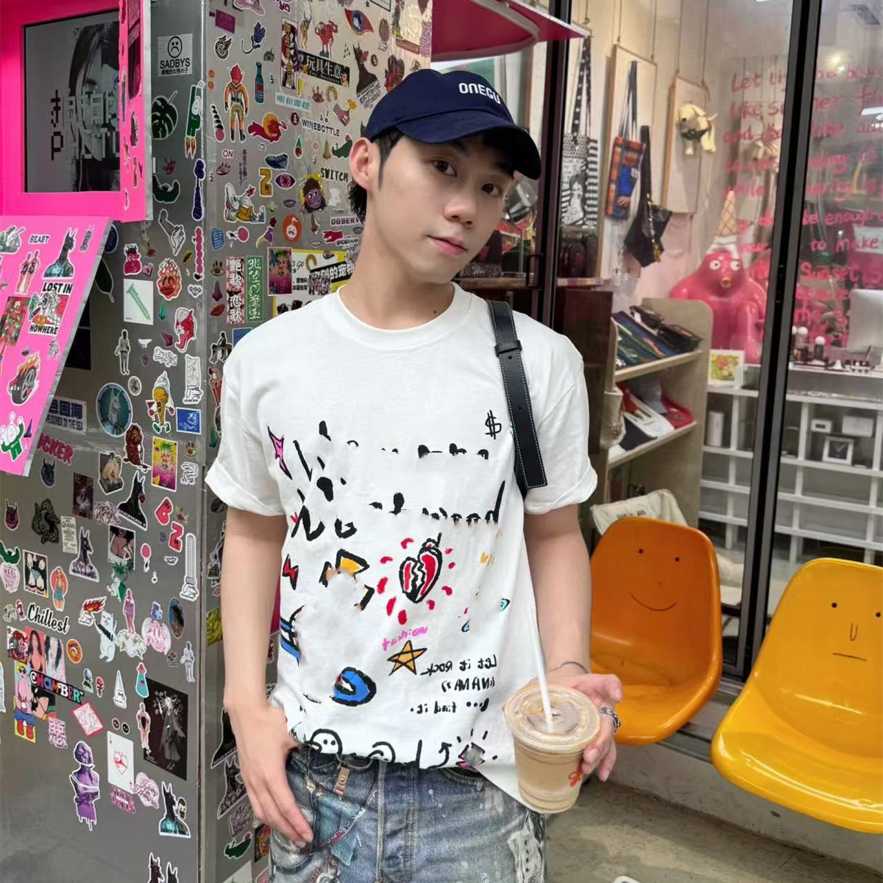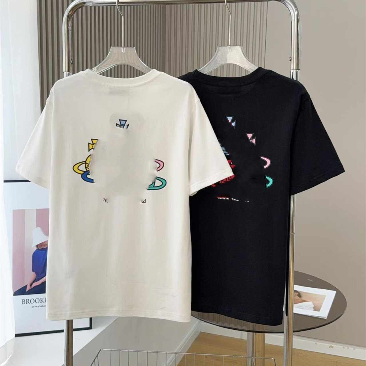 Tujia Planet 인쇄 새로운 반팔 남성 및 여성 커플 티셔츠 균열 인쇄 vivi 패션 브랜드 올바른 크로스 보더 에디션스토어 가기