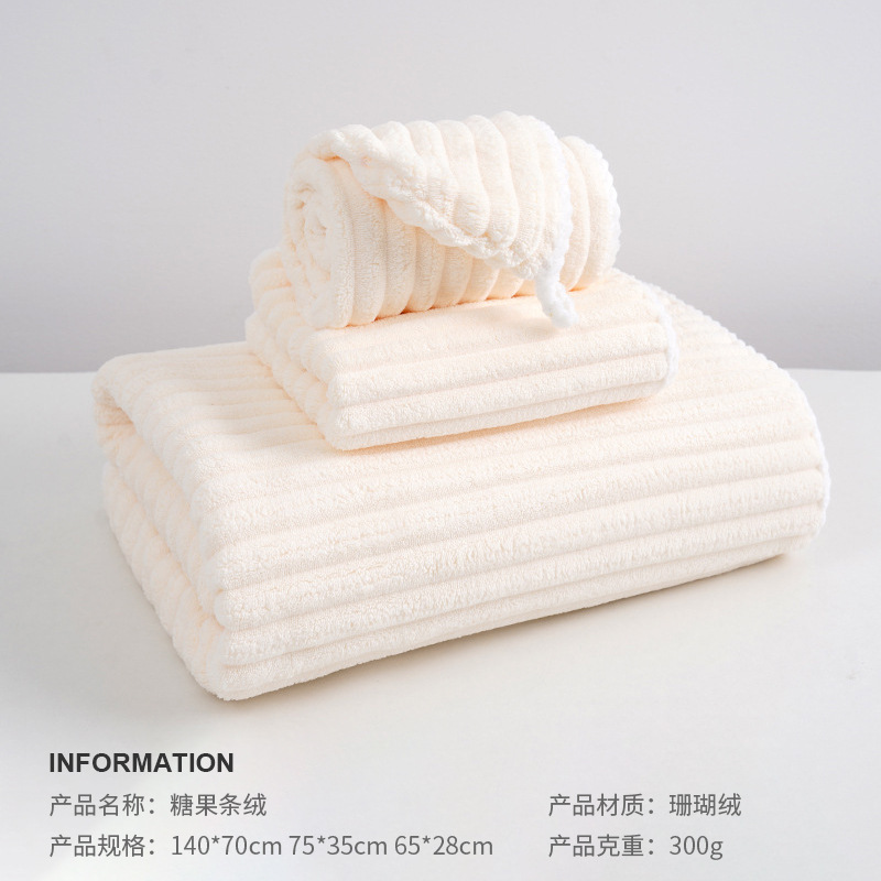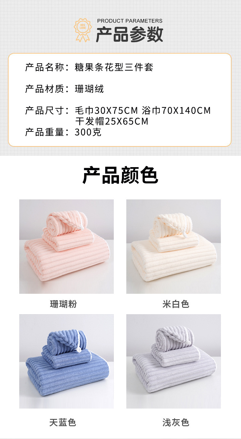 캔디 벨벳 타월 목욕타월 샤워캡 두꺼운 세안타월 가정용 속건 흡수 세트 선물세트 산호벨벳