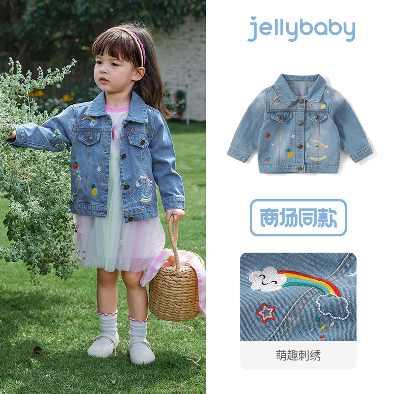Jerry Baby 여아 캐주얼 데님 재킷 아동 가을 옷 귀여운 자수 탑 봄, 가을 아기 가을 옷스토어 가기