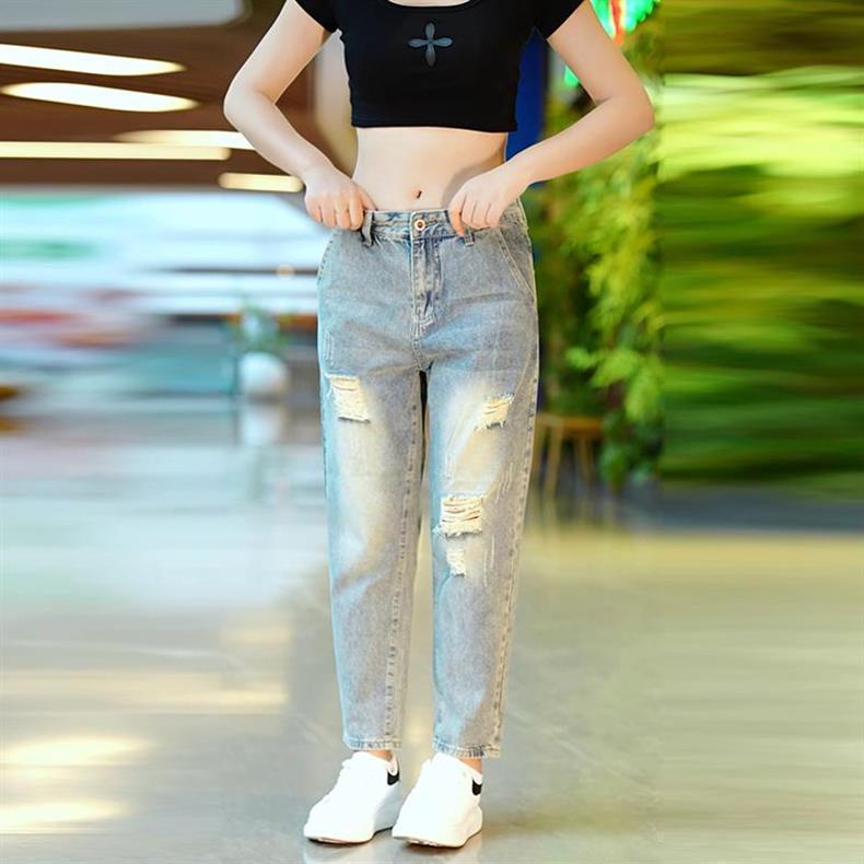 남성 가을 약간 루즈한 9부 남성 청바지 스몰 스트레이트 캐주얼 찢어진 레트로 슬림 패션 Douyin 핫 스타일스토어 가기