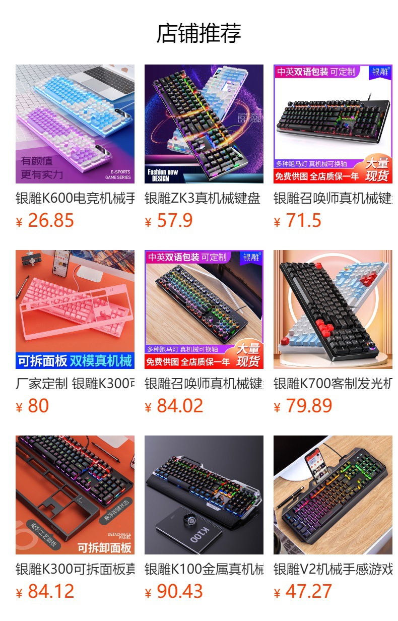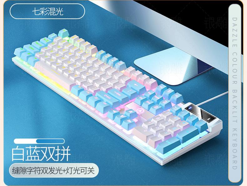 실버 조각 K500 게임 유선 키보드 색상 일치 발광 기계적 느낌 핑크 데스크탑 컴퓨터 액세서리의 세대스토어 가기