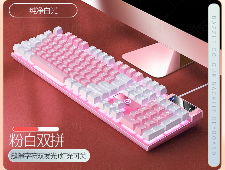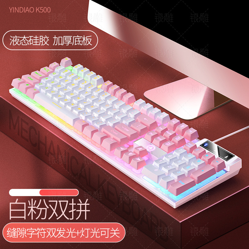 실버 조각 K500 게임 유선 키보드 색상 일치 발광 기계적 느낌 핑크 데스크탑 컴퓨터 액세서리의 세대