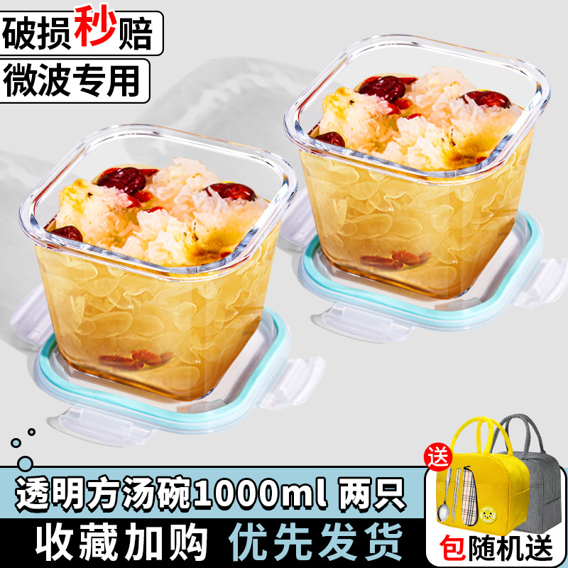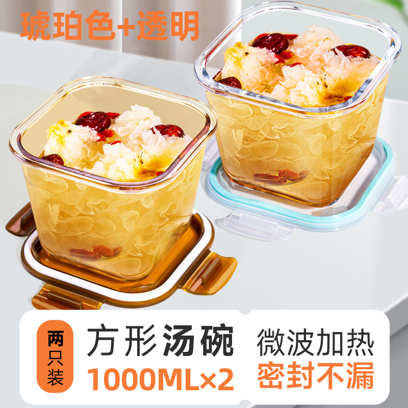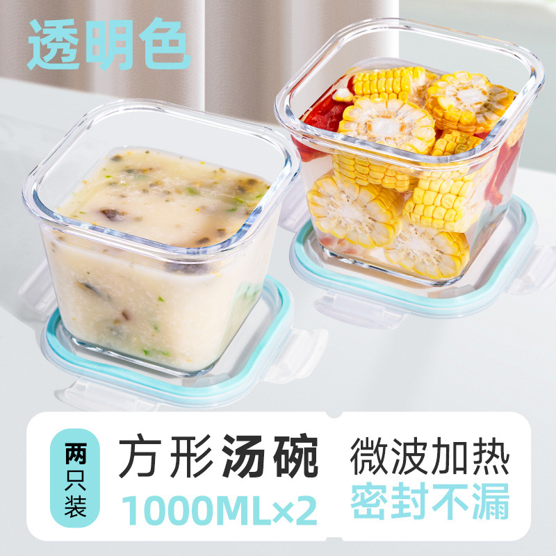 • [1+1] 투명 사각 국그릇 1000ml, 15.9에 2개 구매®