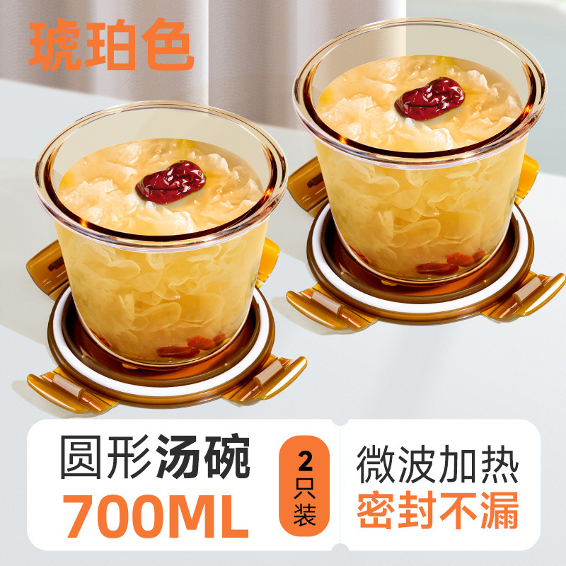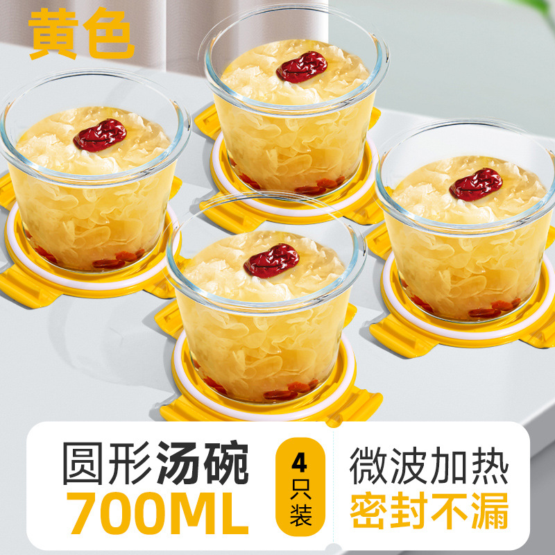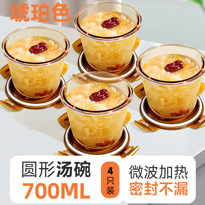 • 호박색 원형 국그릇 700ml*4 냉장고 신선도 유지 세트®