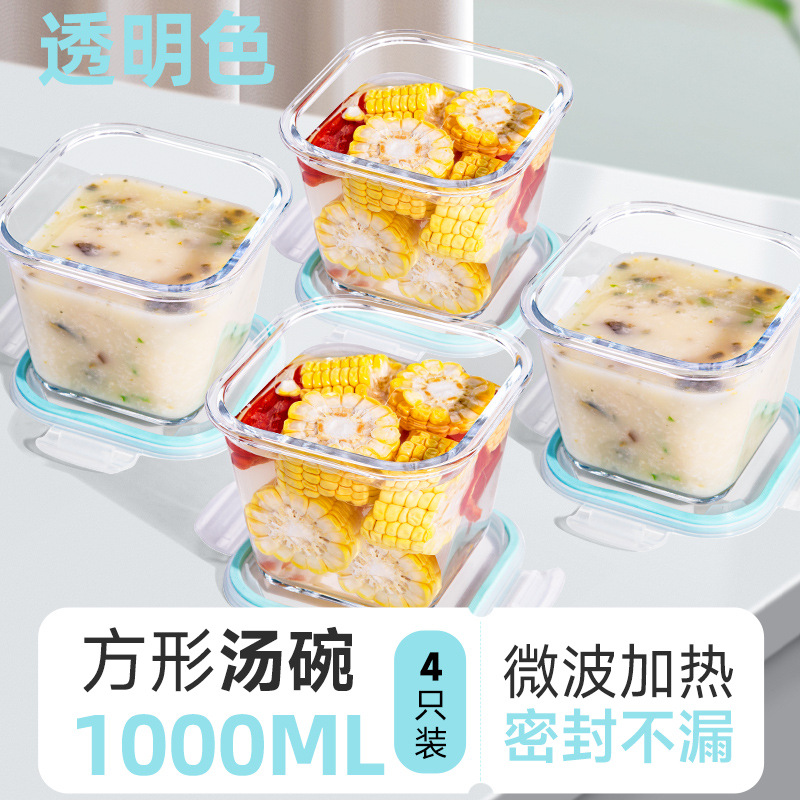 • 투명사각국그릇 1000ml*4 냉장고 신선도 유지세트®