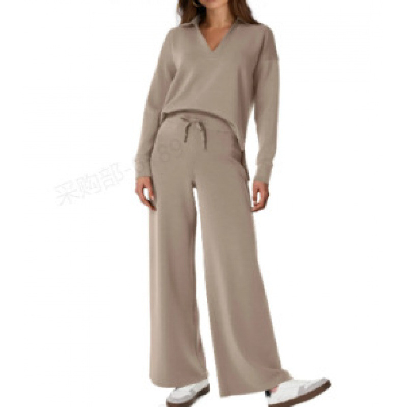 아마존 유럽과 미국의 봄과 가을 새로운 패션 캐주얼 여성 긴 소매 드로우 스트링 단색 통근 바지 세트