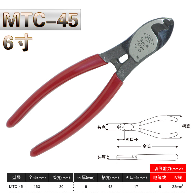 일본 수입 MTC 와이어 가위, 케이블 가위, 케이블 가위, TTC 산업 등급 와이어 브레이크 가위, 와이어 스트리퍼, 6 인치