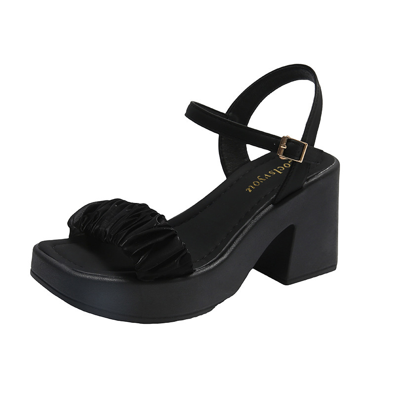 샌들 여성 인기 여름 요정 스타일 하이힐 두꺼운 바닥 스퀘어 힐 두꺼운 힐 샌들 페어리 슈즈와 여성 신발스토어 가기