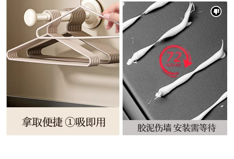 • [밀크화이트] 흡착컵 옷걸이 수납선반 (2개)