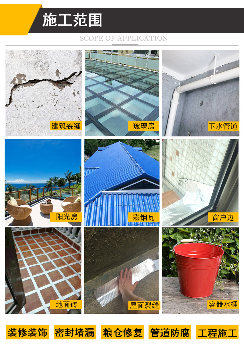 부틸 테이프 제조 업체 자체 접착 방수 코일 소재 알루미늄 호일 실란트 스트립 컬러 강철 지붕 파이프 지붕 누출 수리