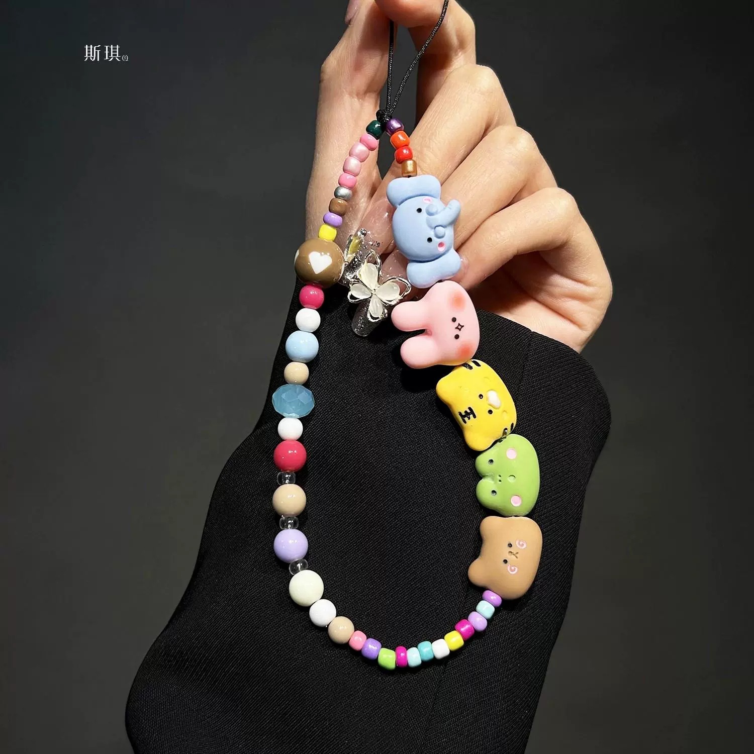 만화 동물 휴대 전화 체인 인 펜던트 휴대 전화 케이스 끈 CCD 도파민 컬러 손목 밴드 여성을위한 안티 손실 체인스토어 가기