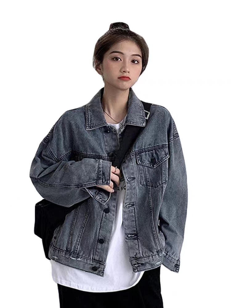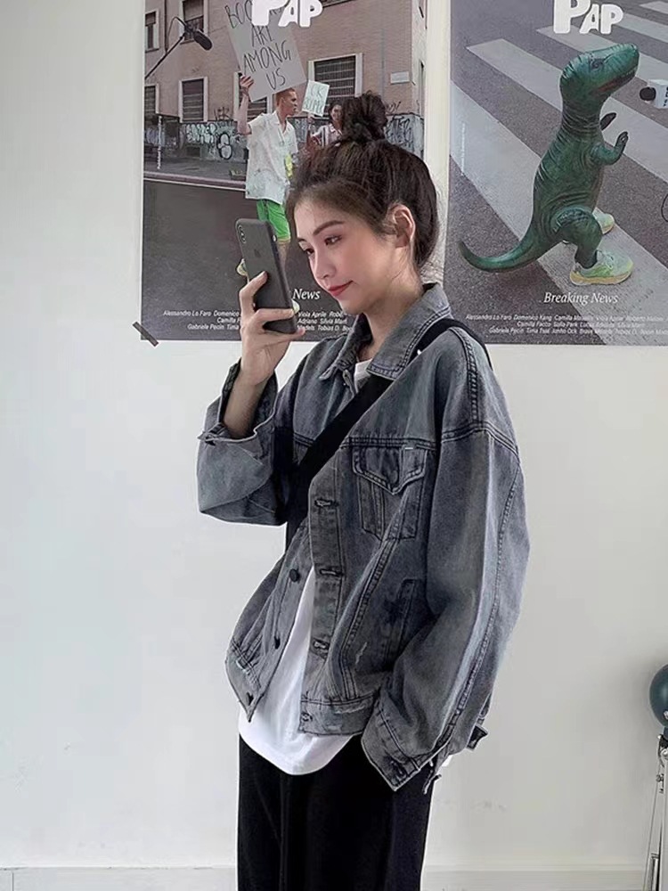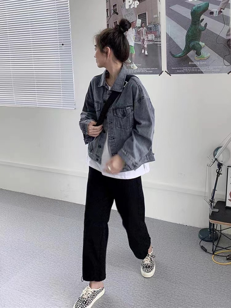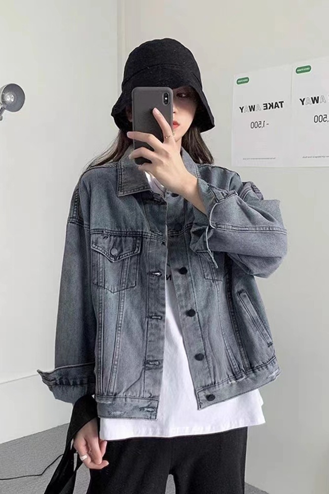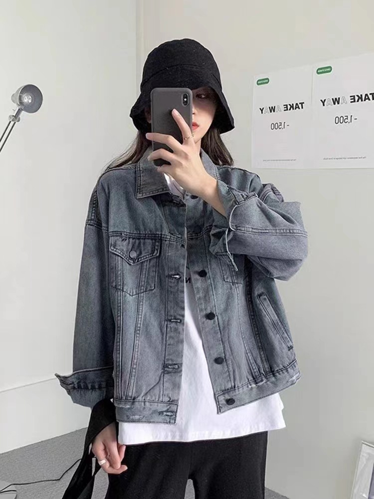 플러스 사이즈 통통한 자매 블랙 그레이 데님 짧은 코트 여성의 봄과 가을 새로운 느슨한 슬리밍 자켓 인기스토어 가기