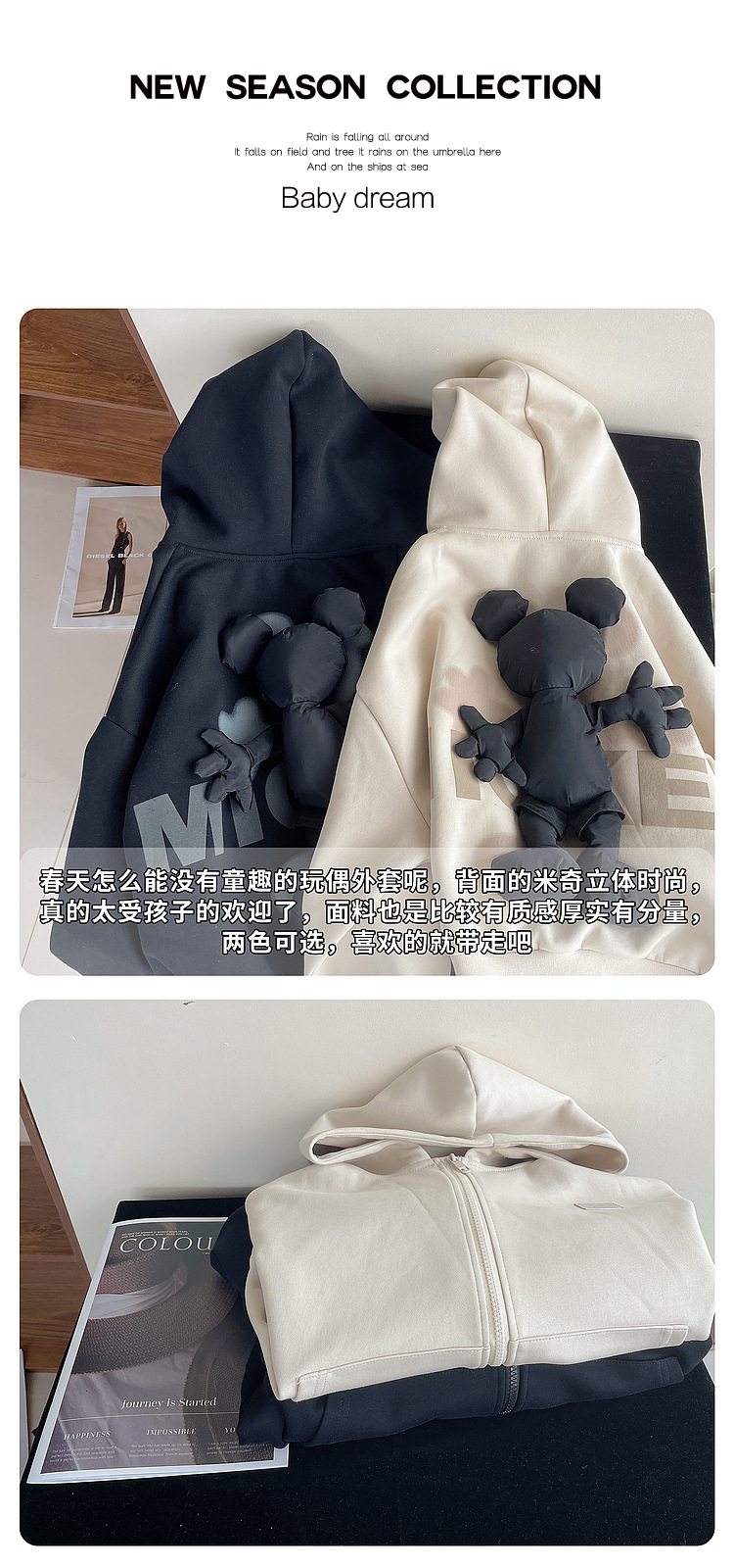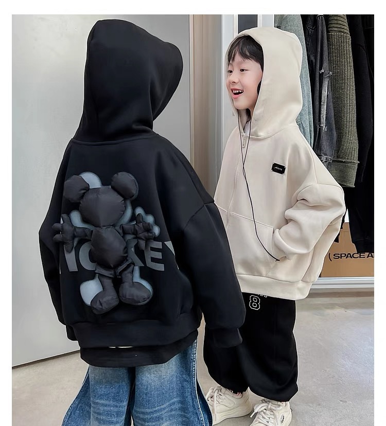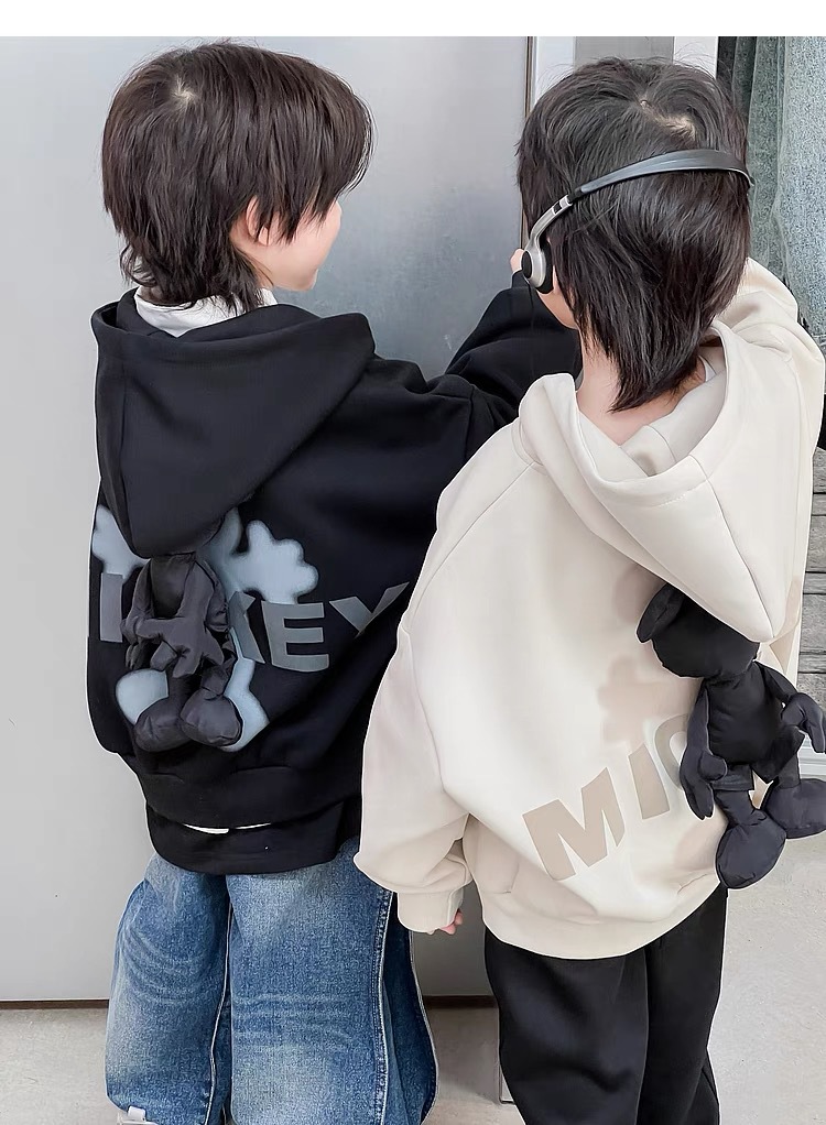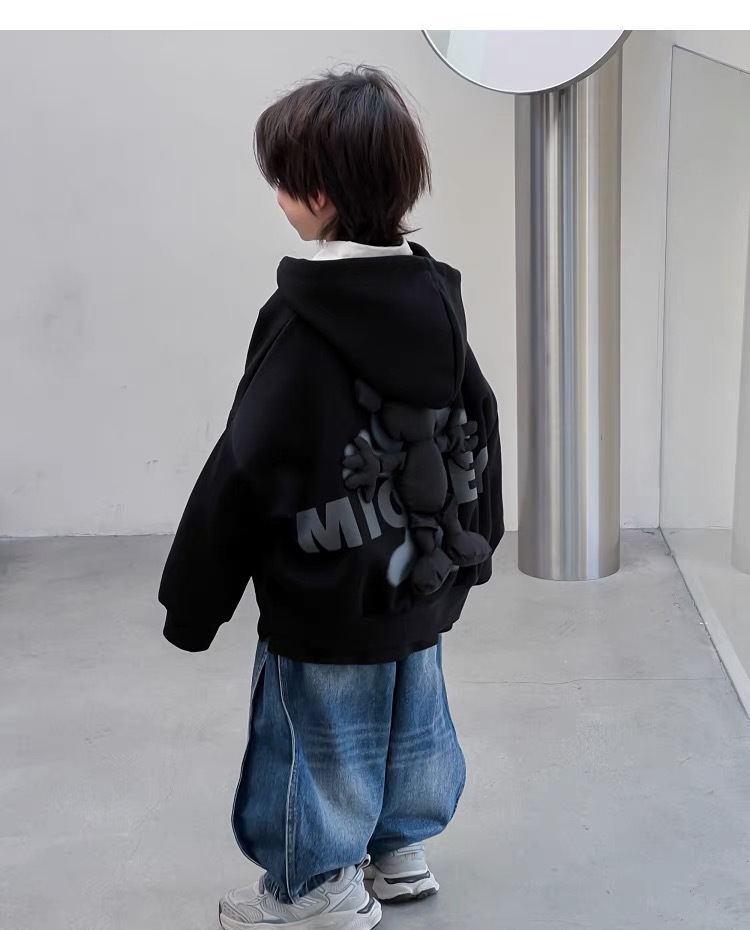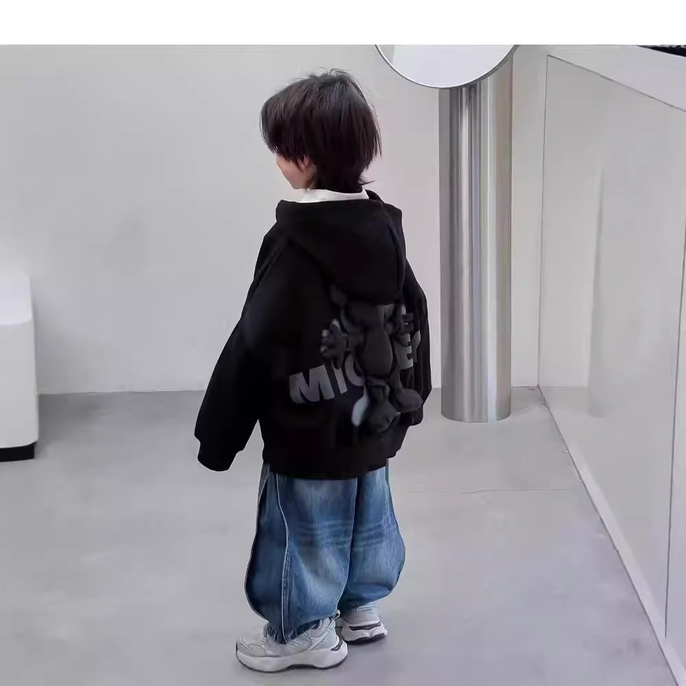 어린이 코트 소년의 3 차원 미키 인형 후드 카디건 봄과 가을을위한 큰 어린이 유행 캐주얼 탑스토어 가기