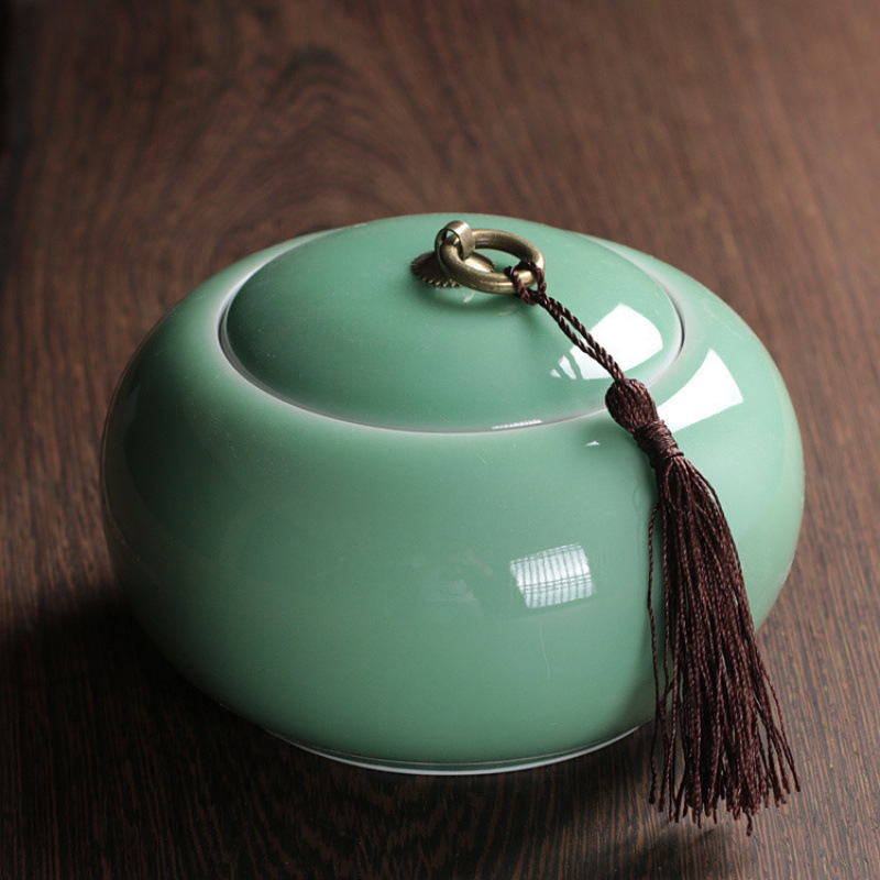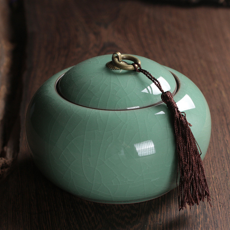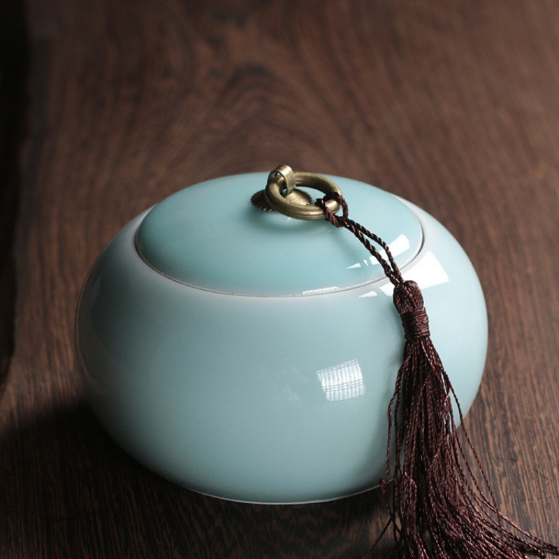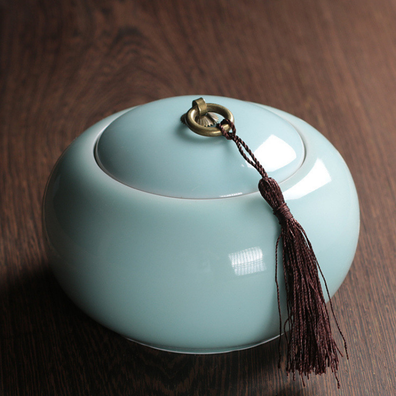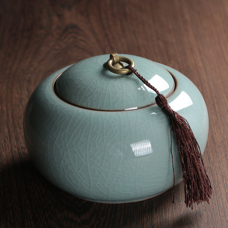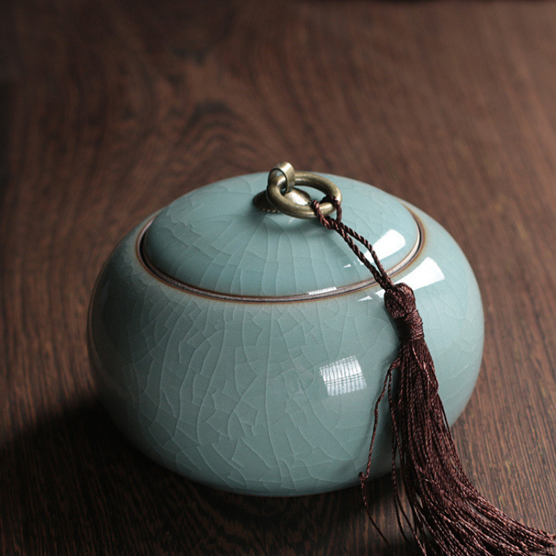 Longquan 고대 Rhyme Celadon 차 냄비 Zisha Ruyao Pu'er 차 주석 모조 천 봉인 차 냄비 세라믹 구리 반지 차 냄비스토어 가기