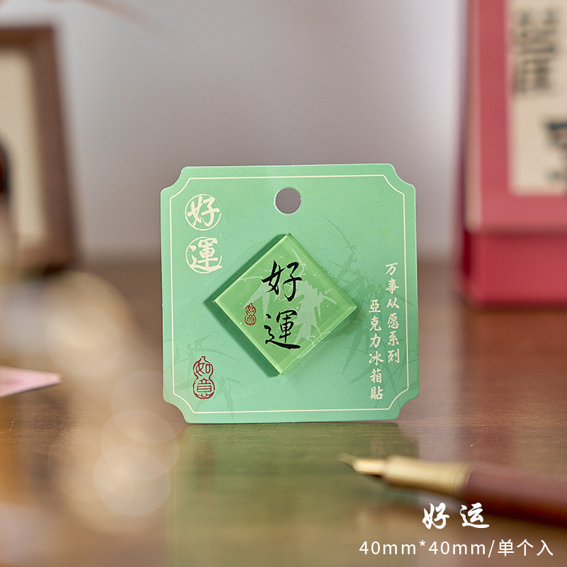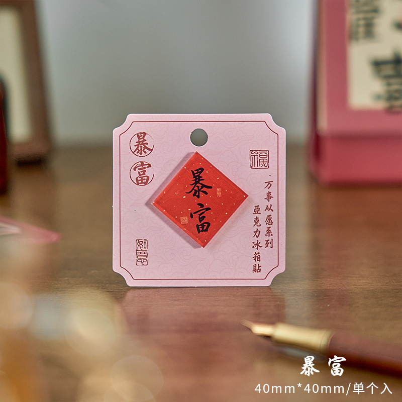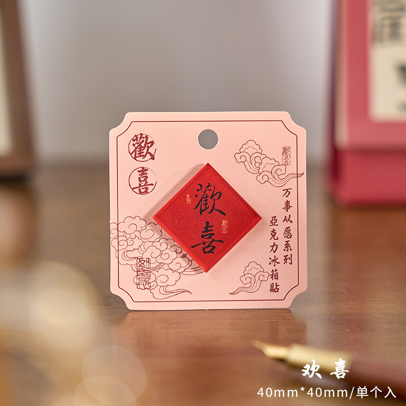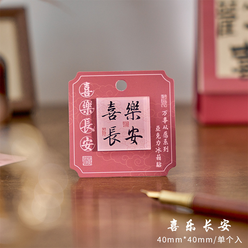 아크릴 마그네틱 냉장고 스티커 중국 스타일 서예 평화 기쁨 축복 텍스트 냉장고 장식 스티커