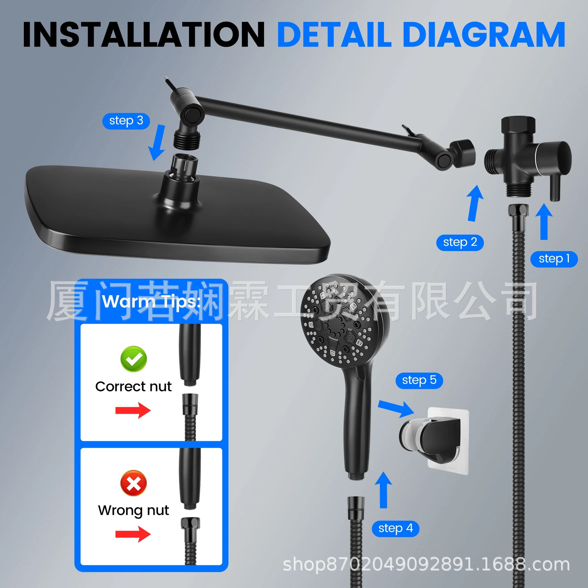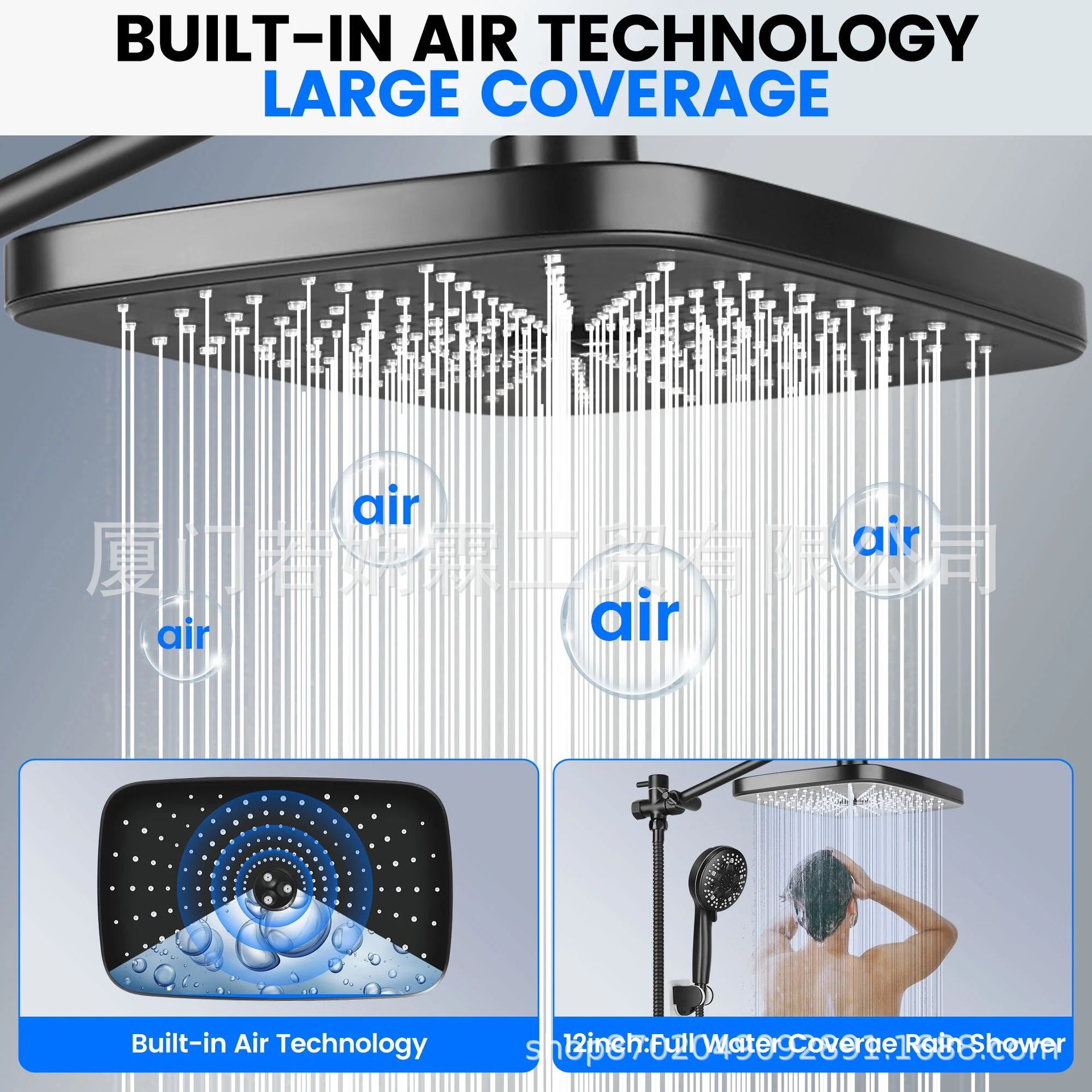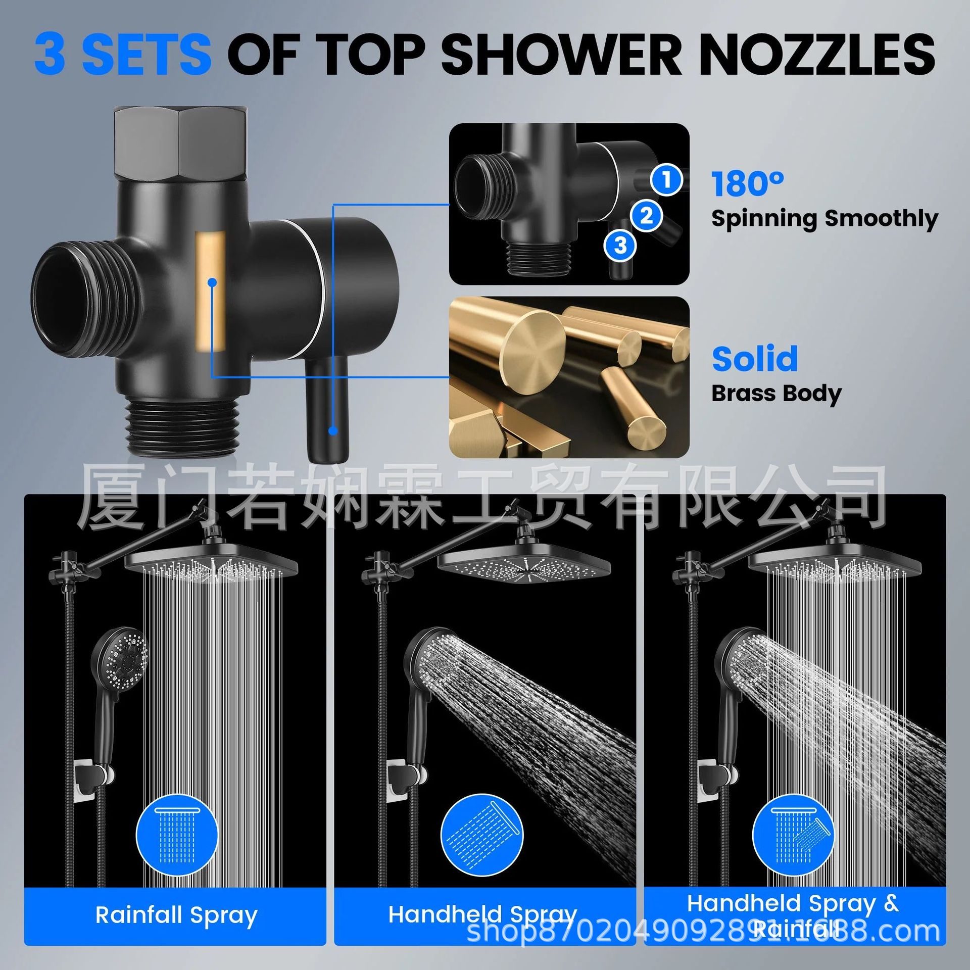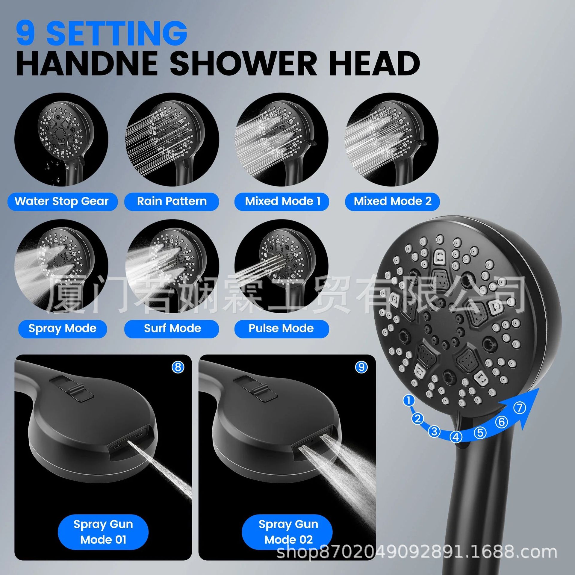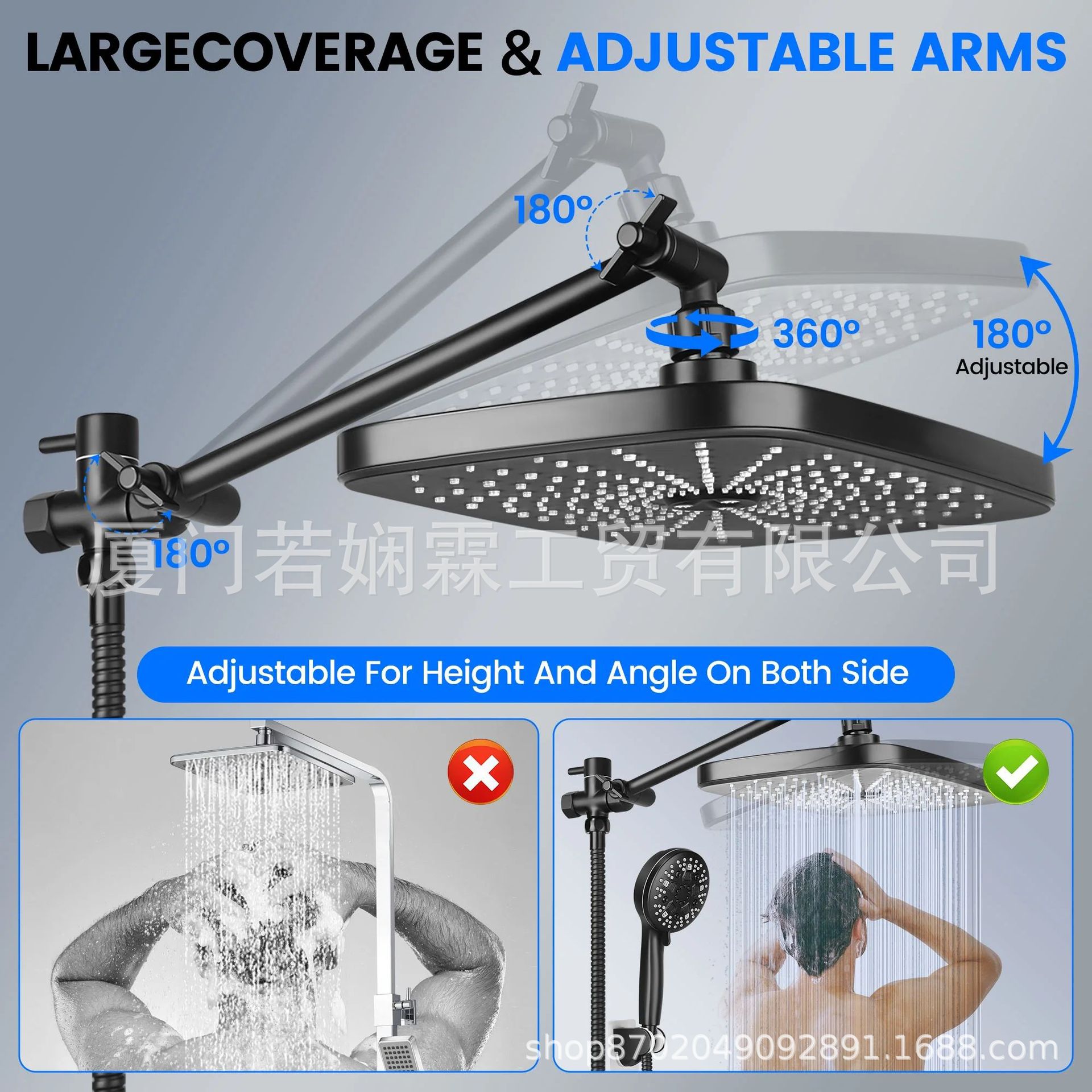 월마트 인기상품 블랙 9단계 핸드헬드 샤워헤드 세트 ABS 12inch 스타리프트 탑샤워 세트