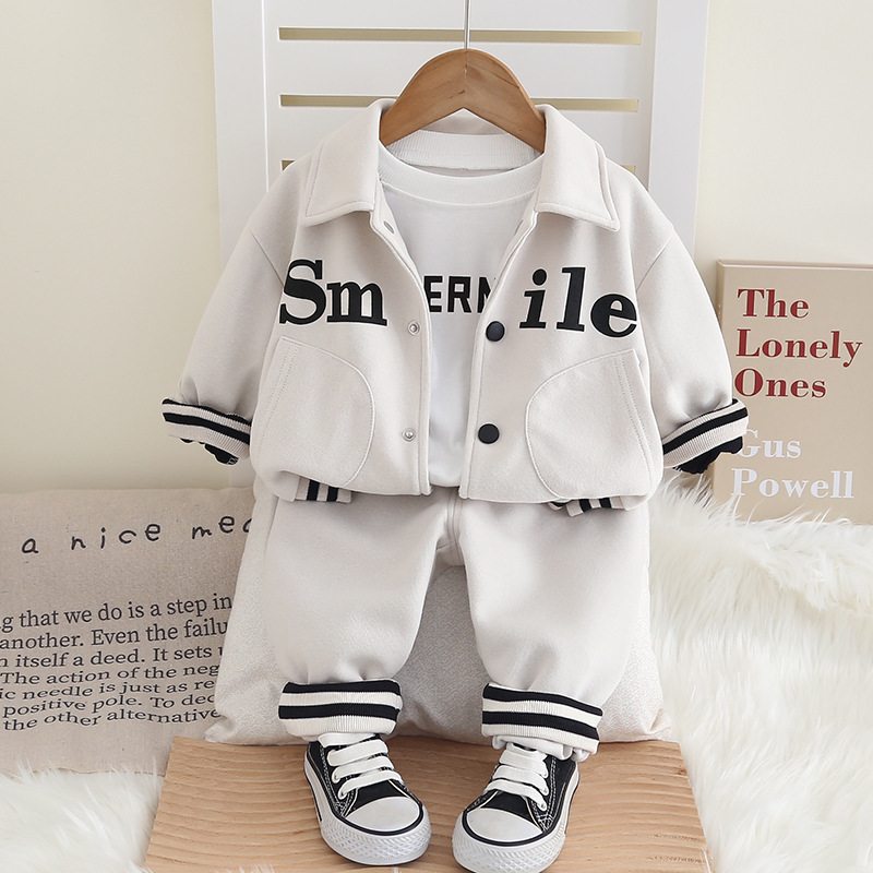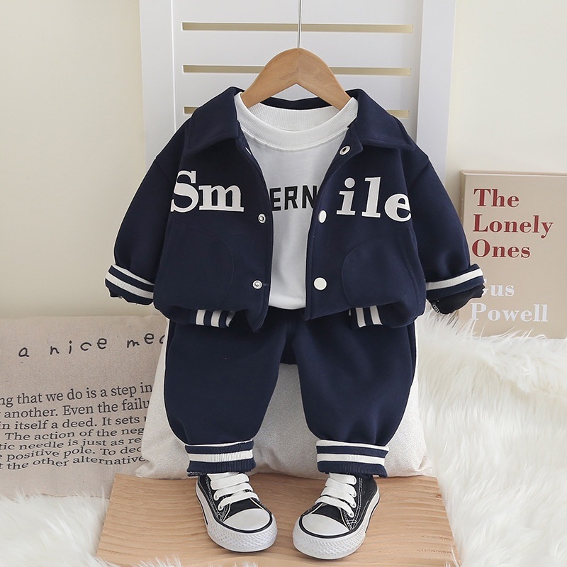 남자 아기 봄과 가을 패션 세트 1-5 년 된 새로운 재킷 서양식 아기 어린이 가을 야구 세트 3 조각 세트 2스토어 가기