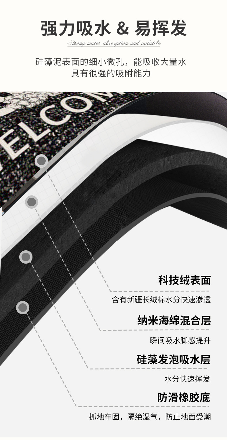 작은 Xiangfeng 욕실 바닥 매트 미끄럼 방지 Diatom 진흙 흡수 매트 욕실 샤워 룸 도어 욕실 빠른 건조 발 매트