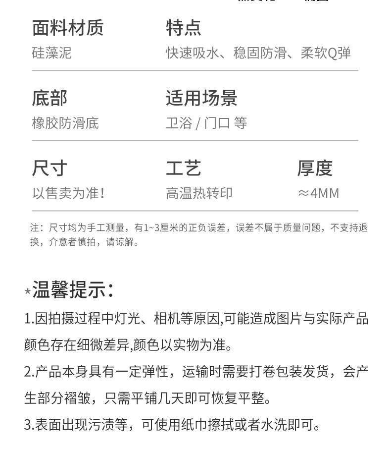 작은 Xiangfeng 욕실 바닥 매트 미끄럼 방지 Diatom 진흙 흡수 매트 욕실 샤워 룸 도어 욕실 빠른 건조 발 매트스토어 가기
