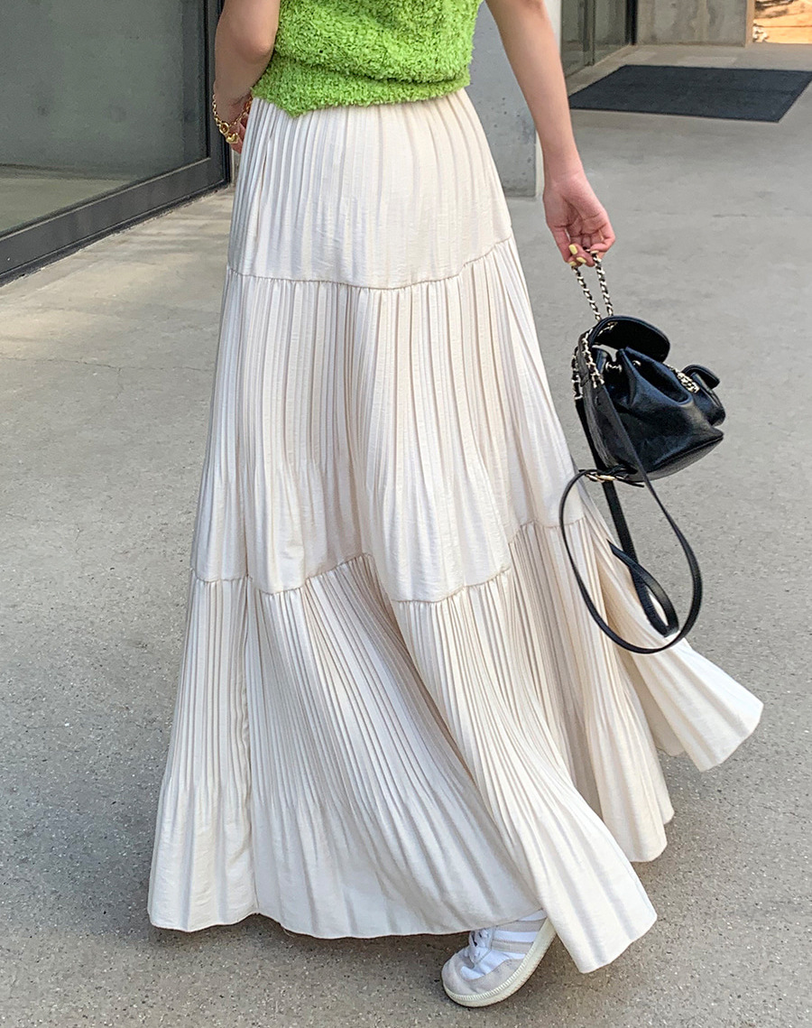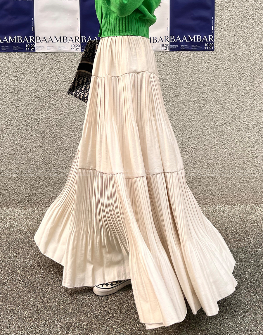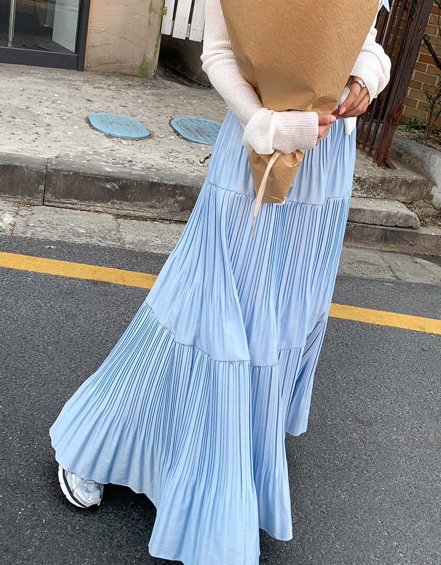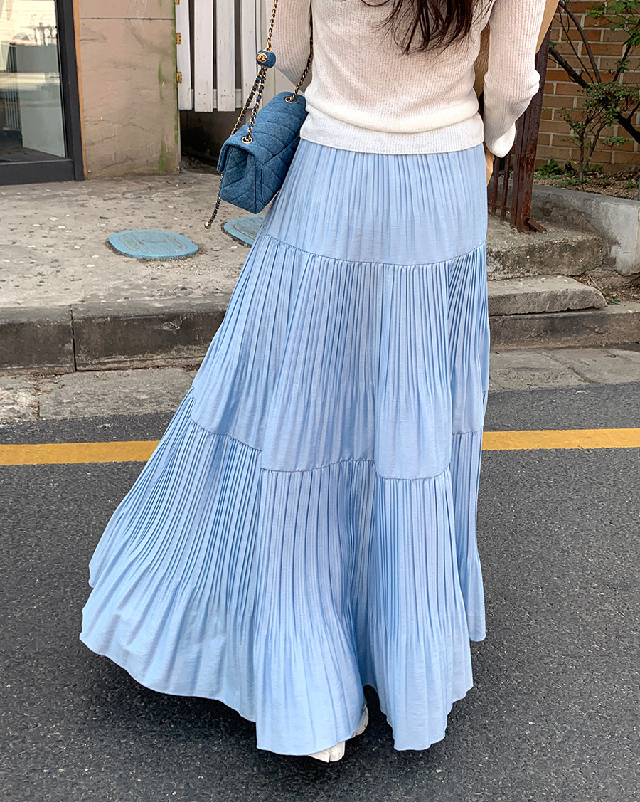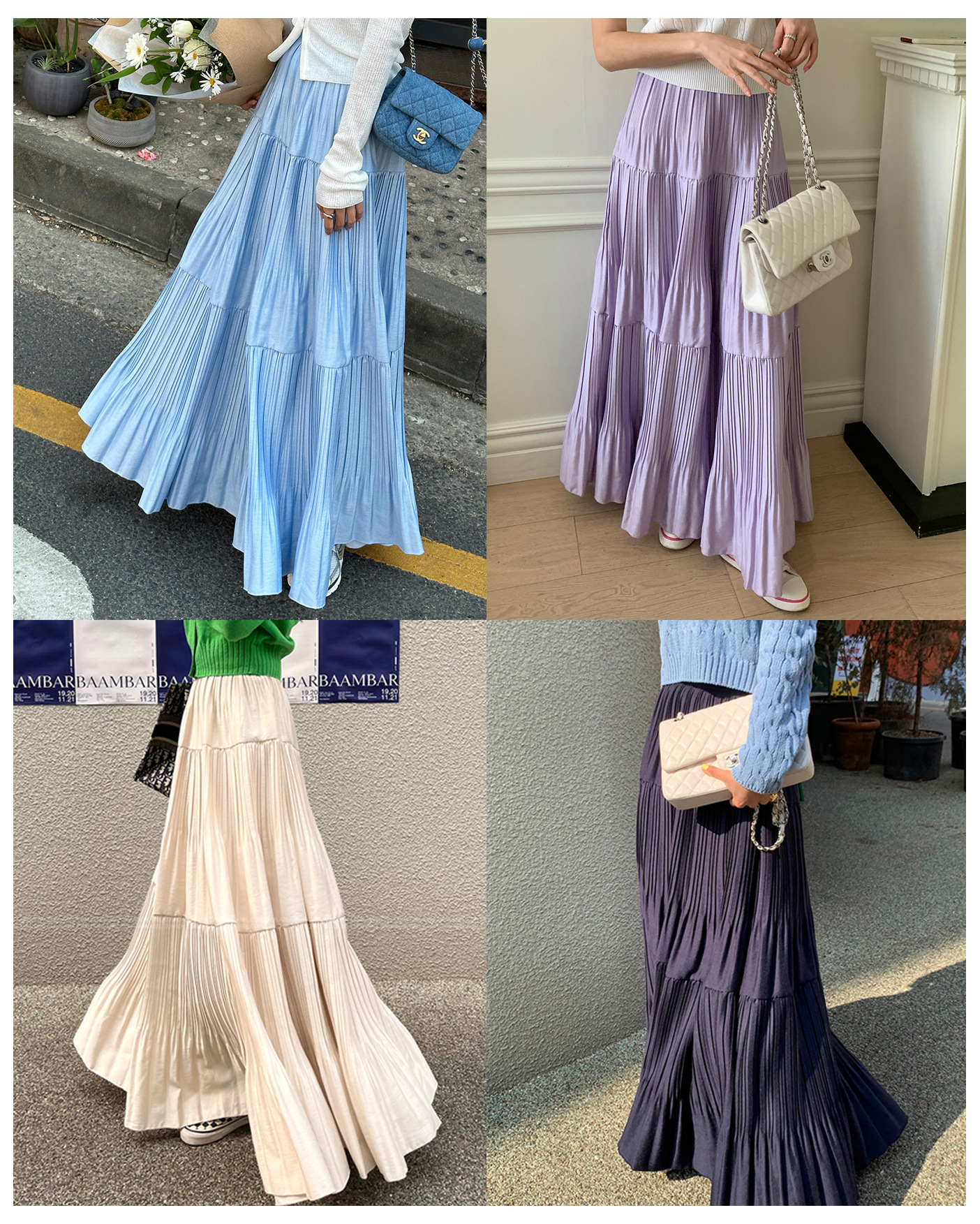 크기 업데이트 부드러운 기질 높은 허리 슬리밍 불규칙한 디자인 대형 스윙 주름 치마 긴 치마 4 색