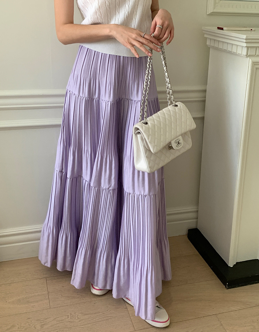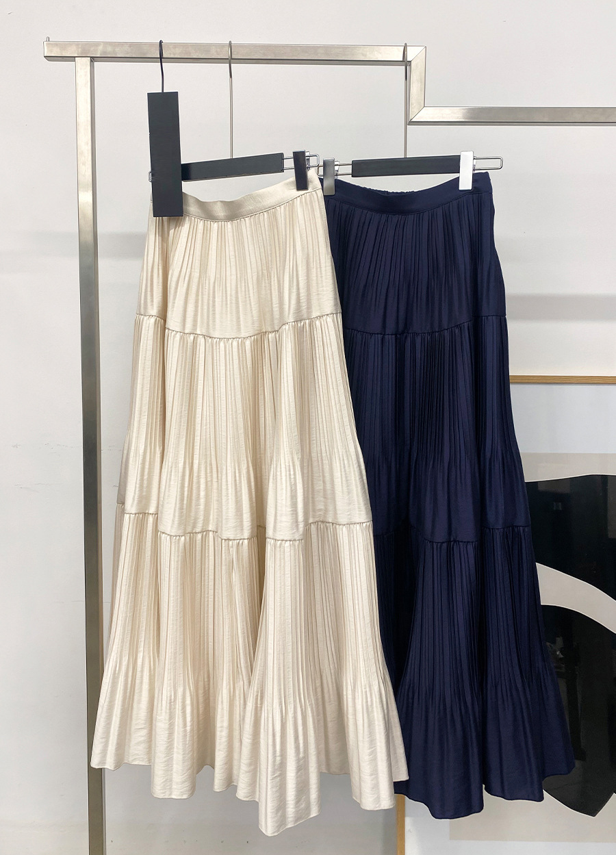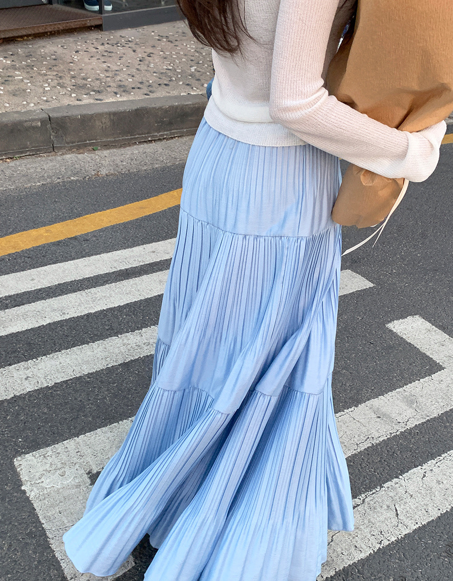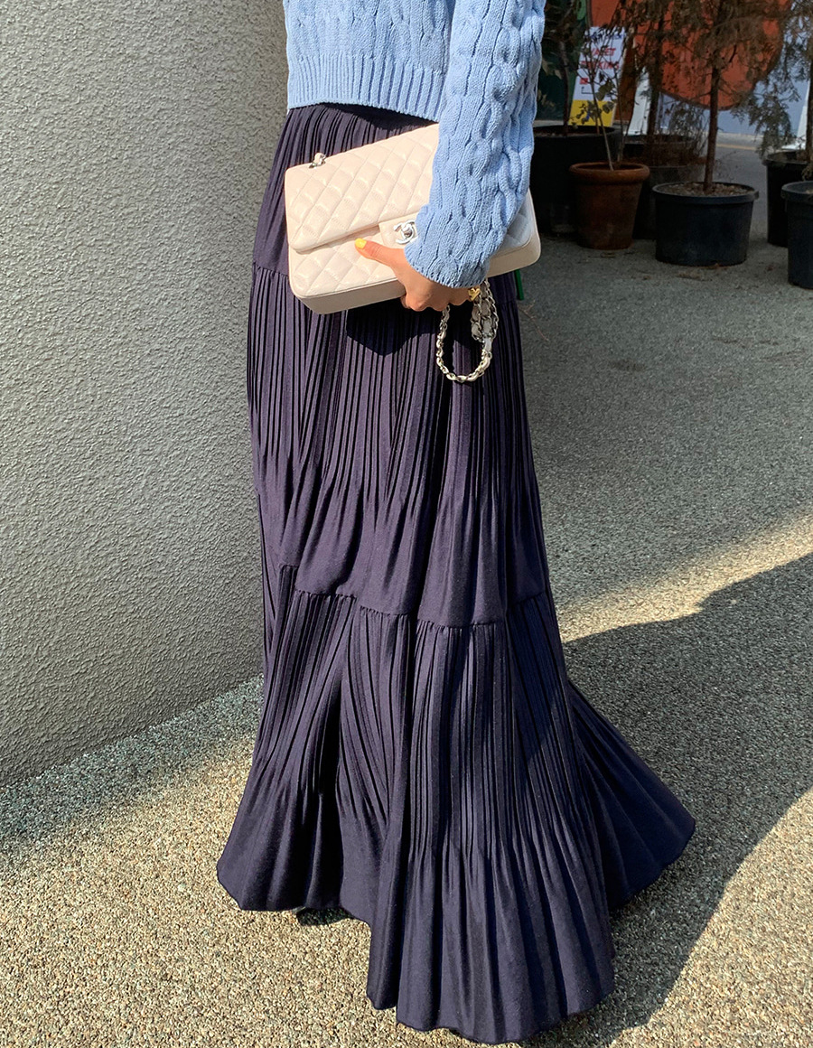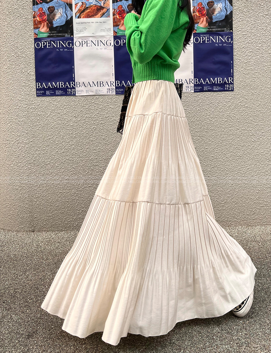 크기 업데이트 부드러운 기질 높은 허리 슬리밍 불규칙한 디자인 대형 스윙 주름 치마 긴 치마 4 색