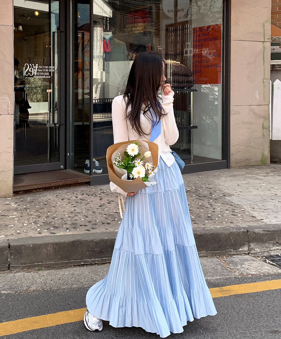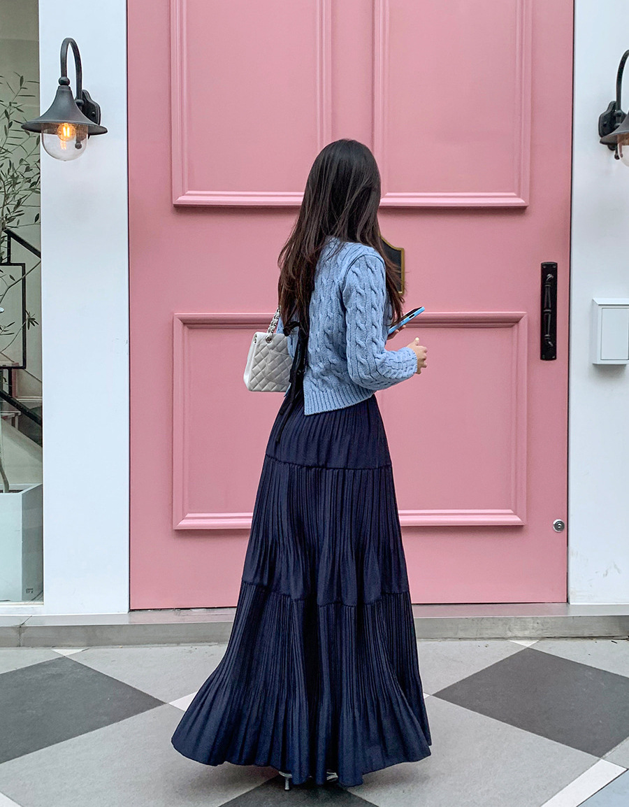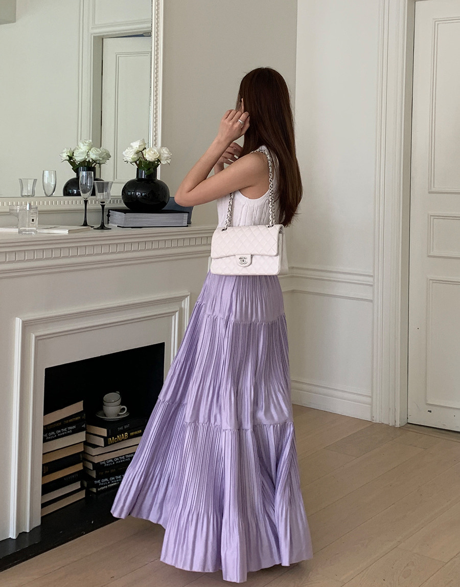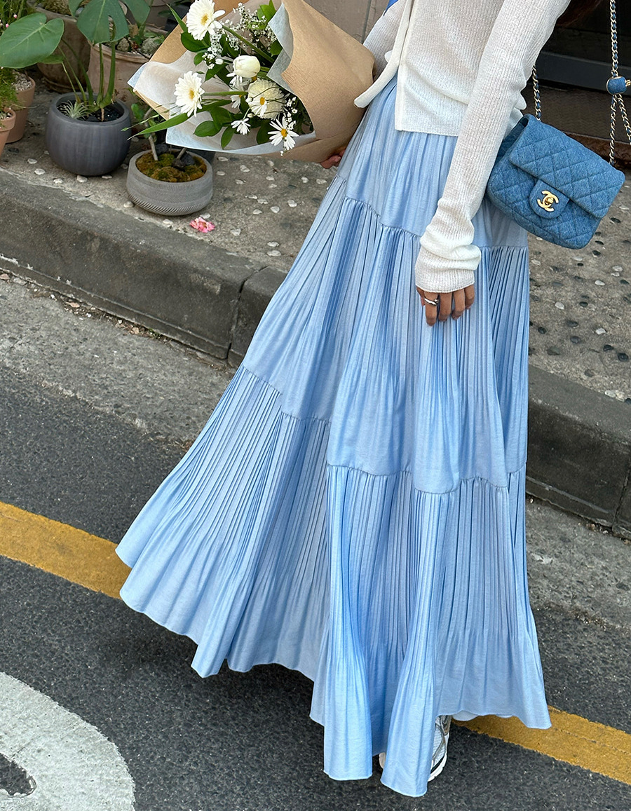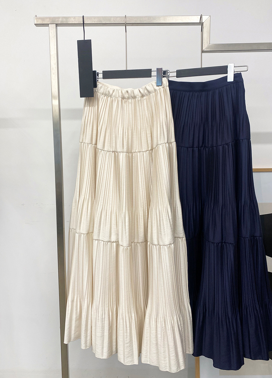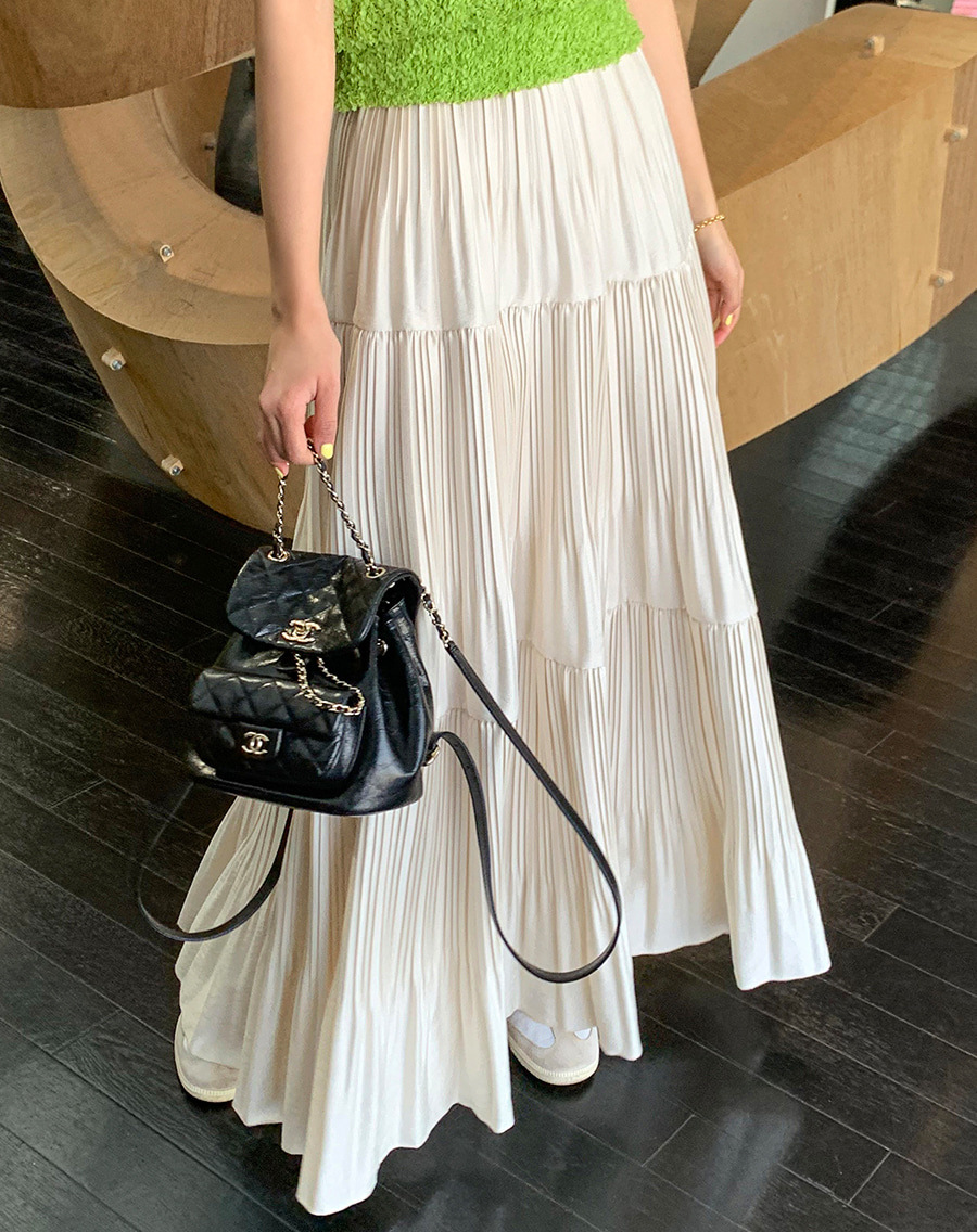크기 업데이트 부드러운 기질 높은 허리 슬리밍 불규칙한 디자인 대형 스윙 주름 치마 긴 치마 4 색