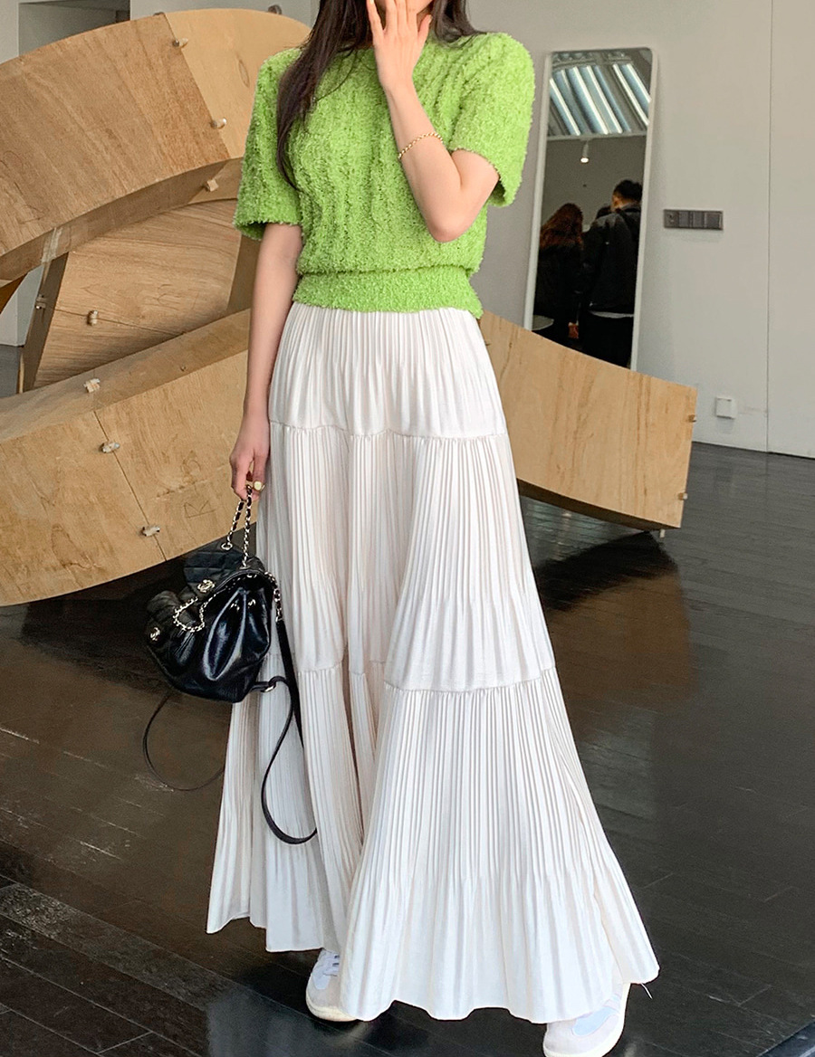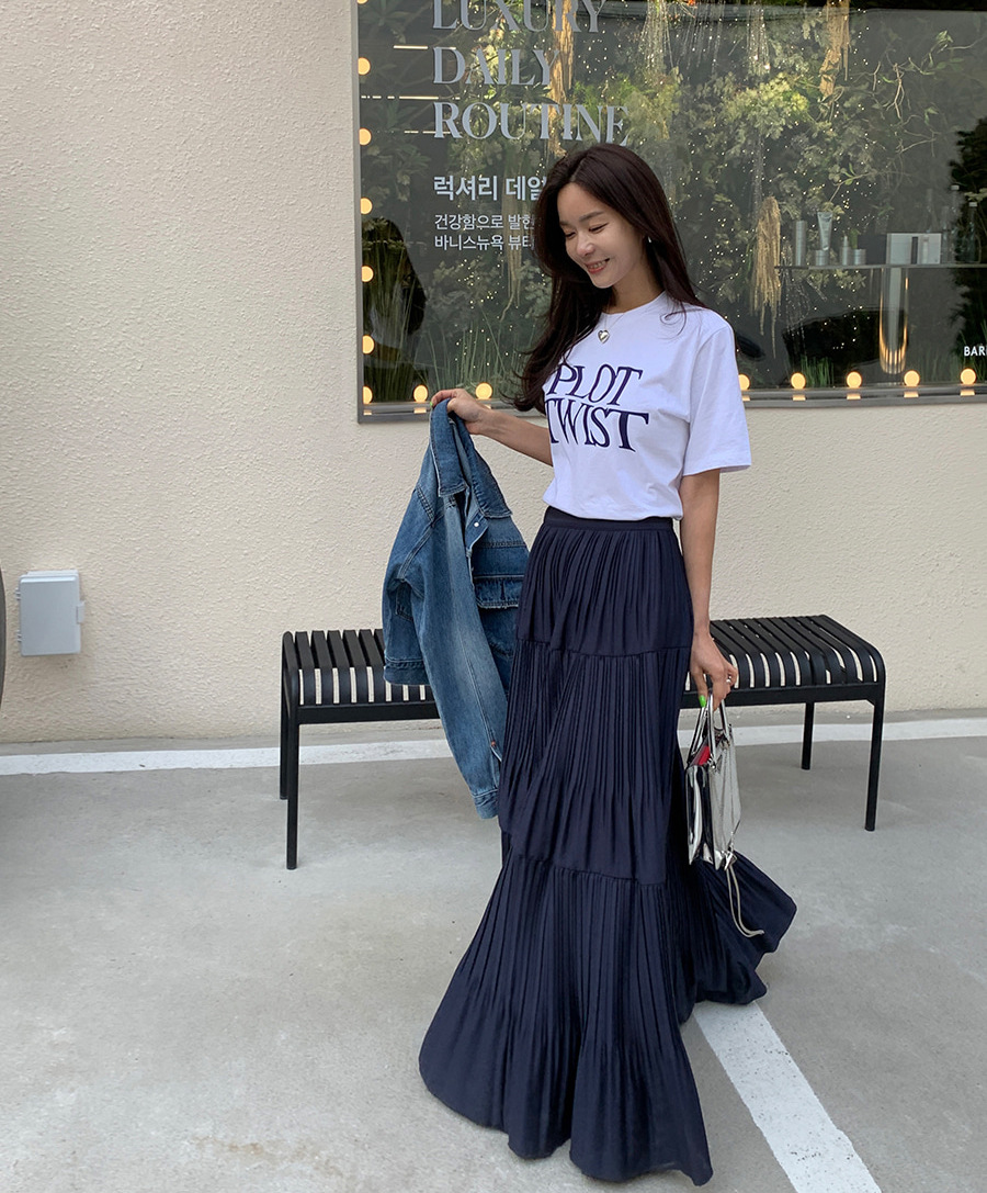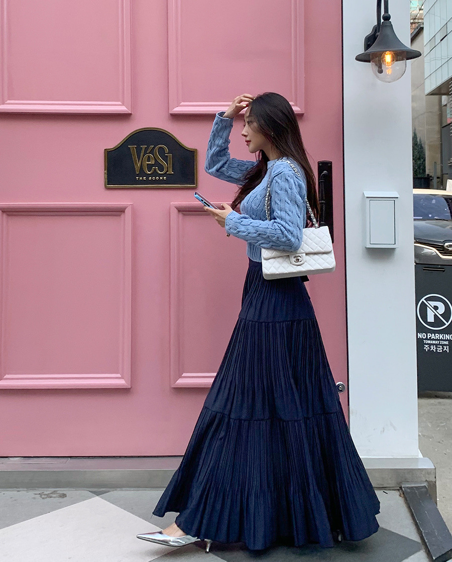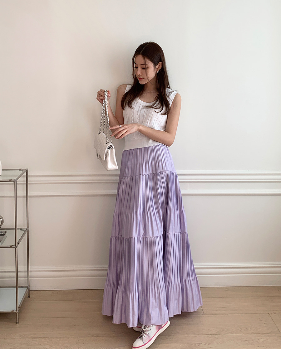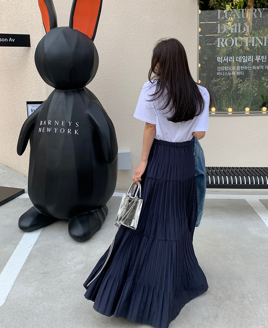 크기 업데이트 부드러운 기질 높은 허리 슬리밍 불규칙한 디자인 대형 스윙 주름 치마 긴 치마 4 색