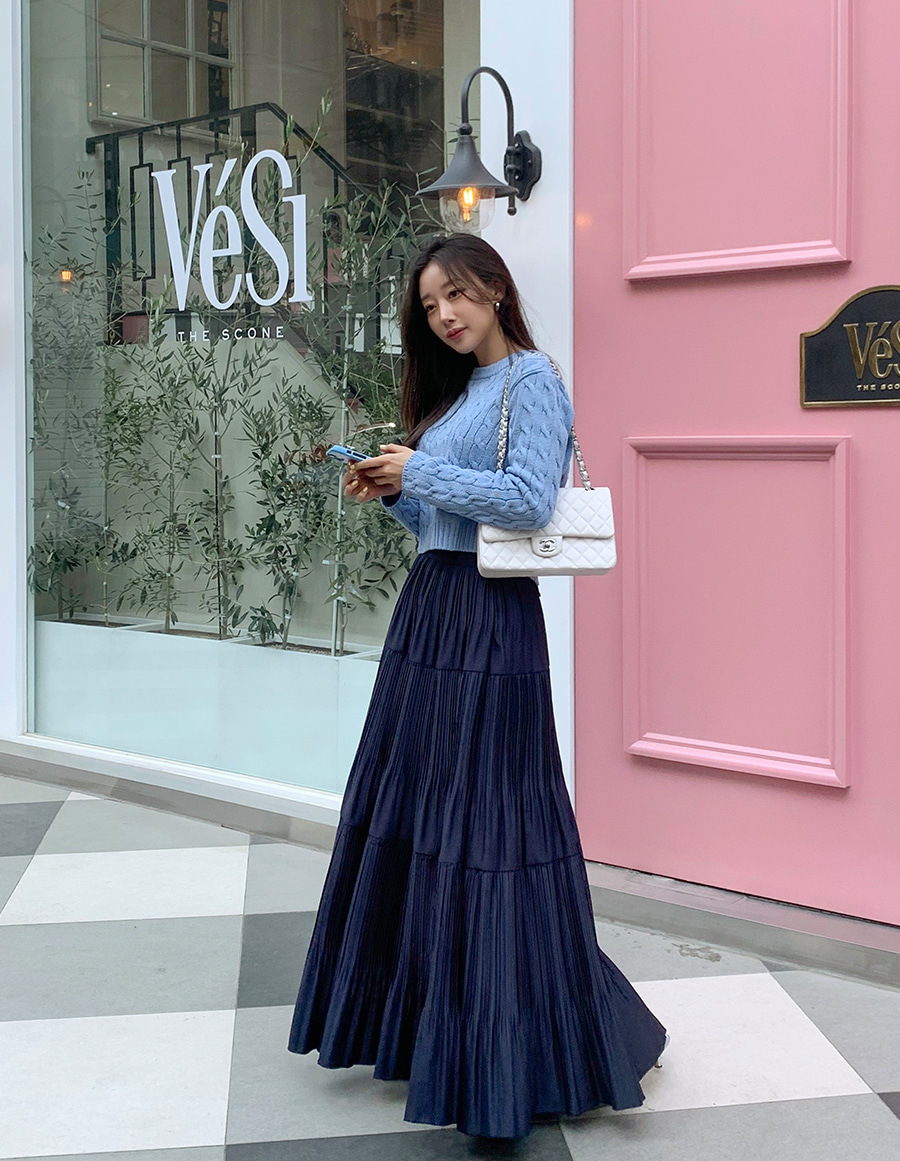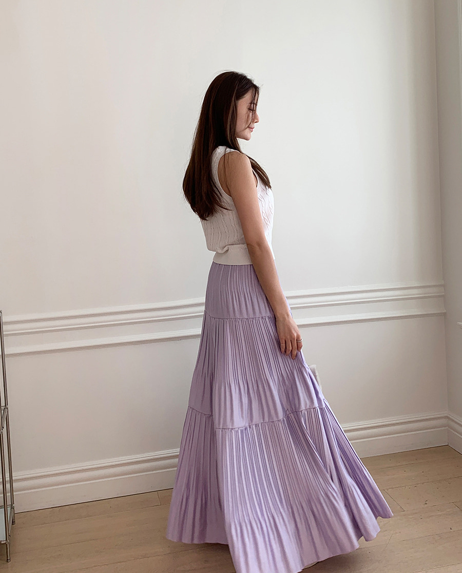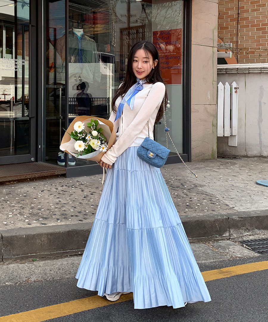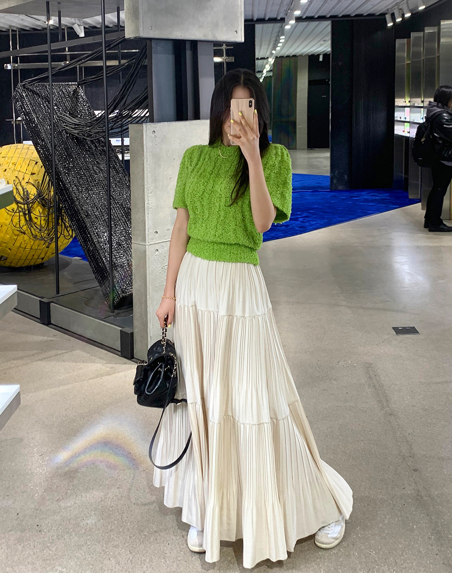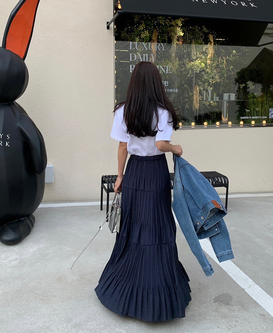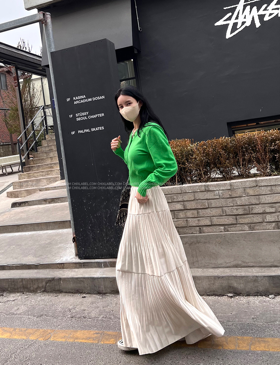 크기 업데이트 부드러운 기질 높은 허리 슬리밍 불규칙한 디자인 대형 스윙 주름 치마 긴 치마 4 색