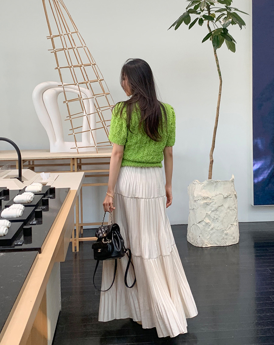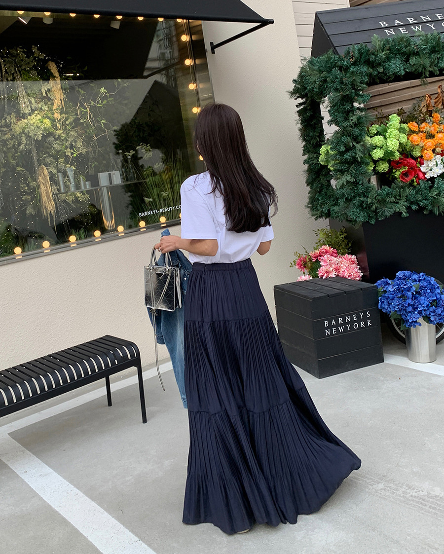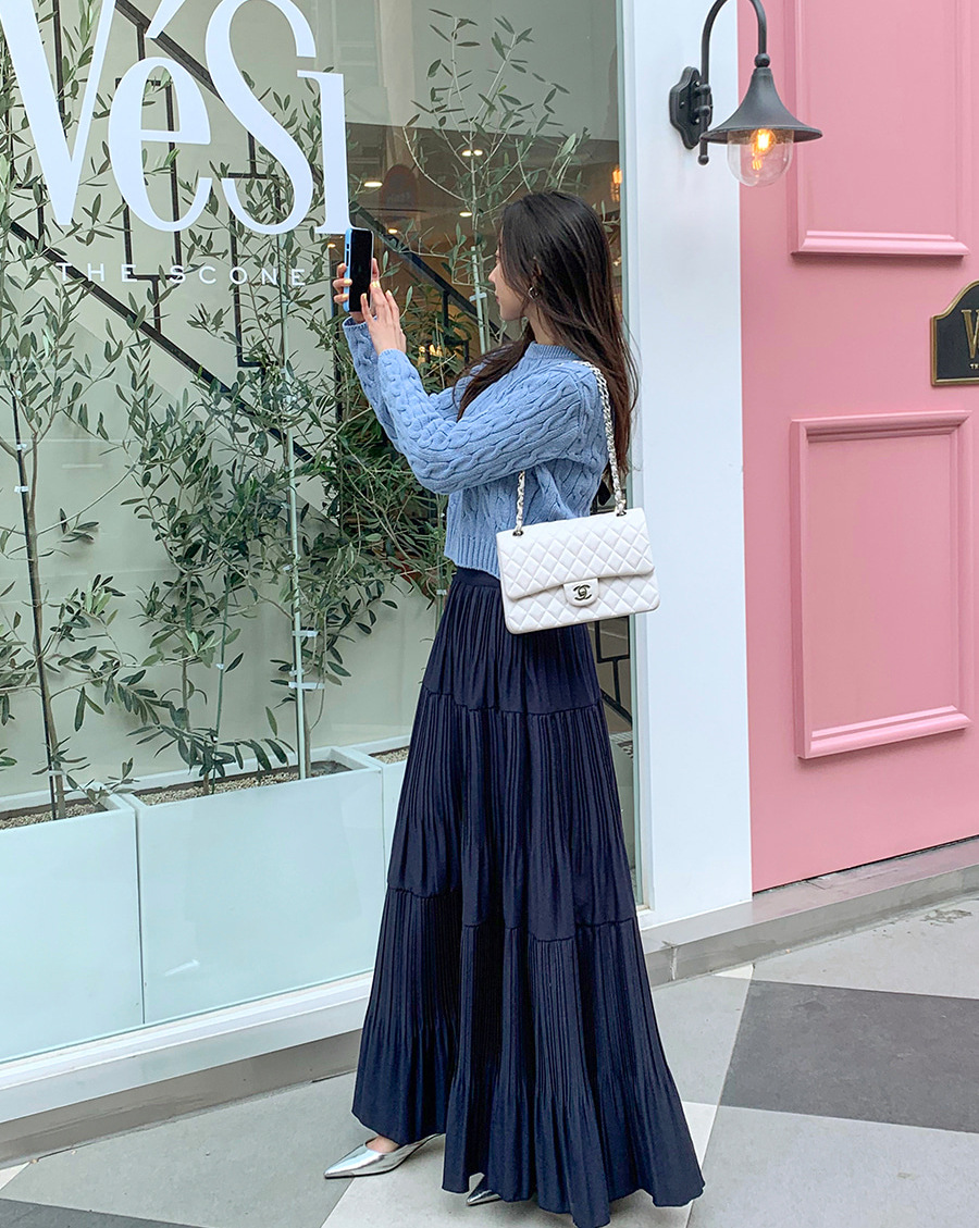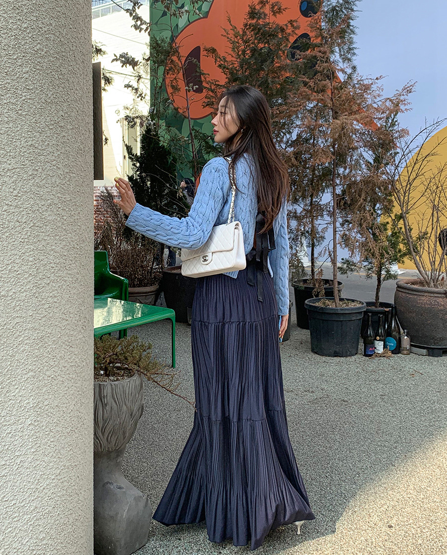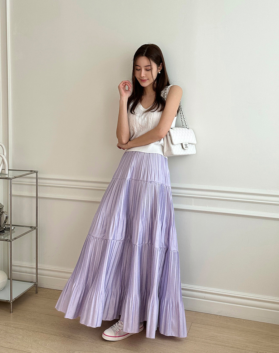 크기 업데이트 부드러운 기질 높은 허리 슬리밍 불규칙한 디자인 대형 스윙 주름 치마 긴 치마 4 색