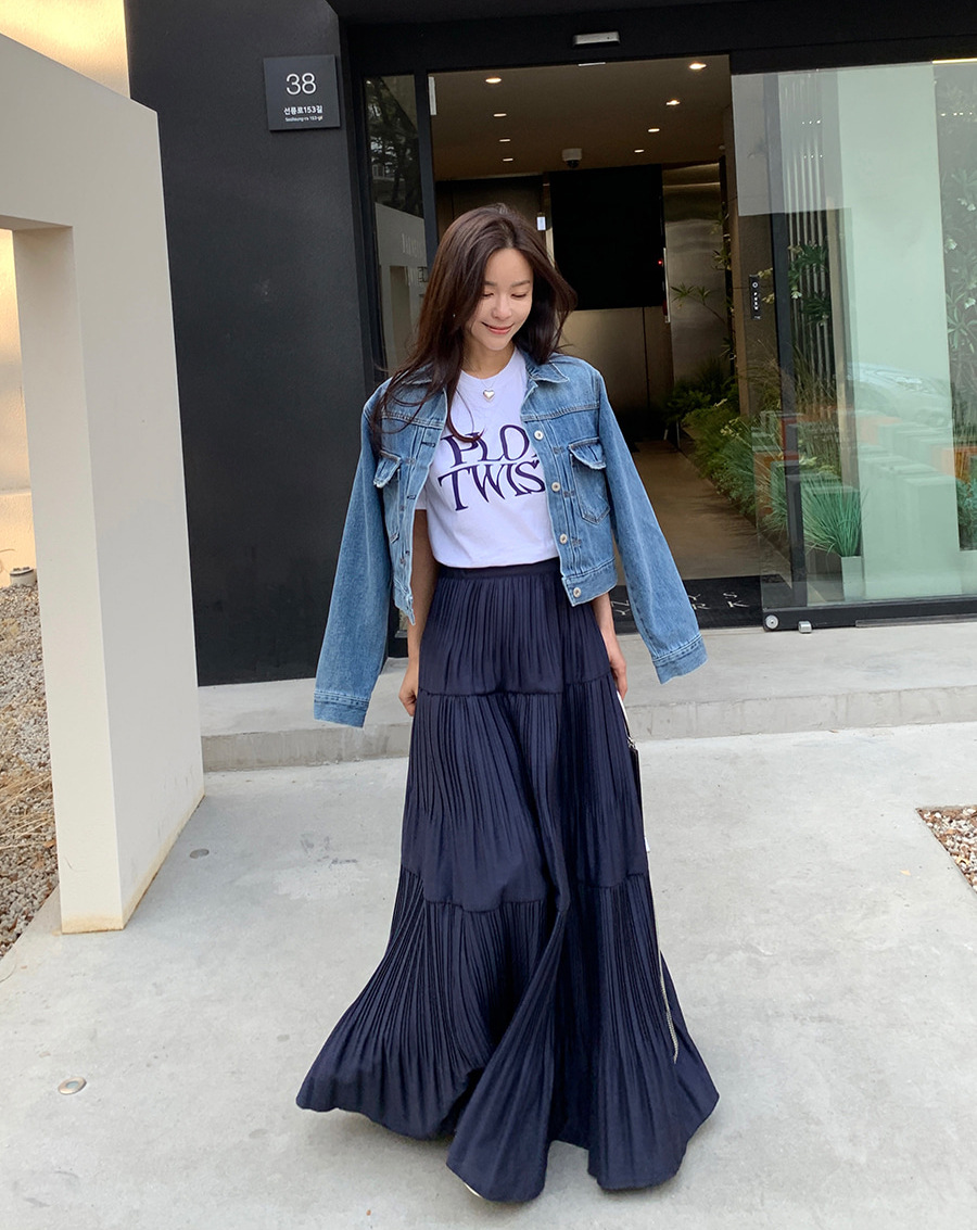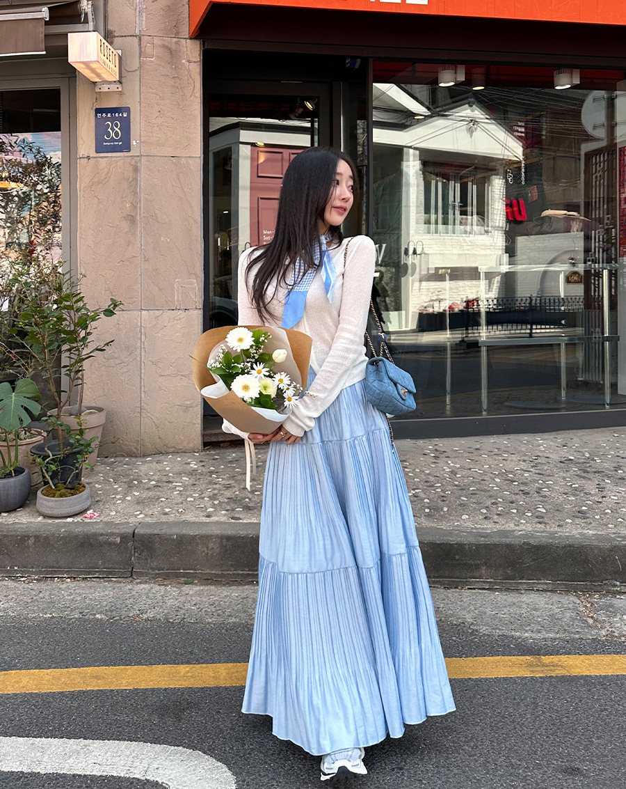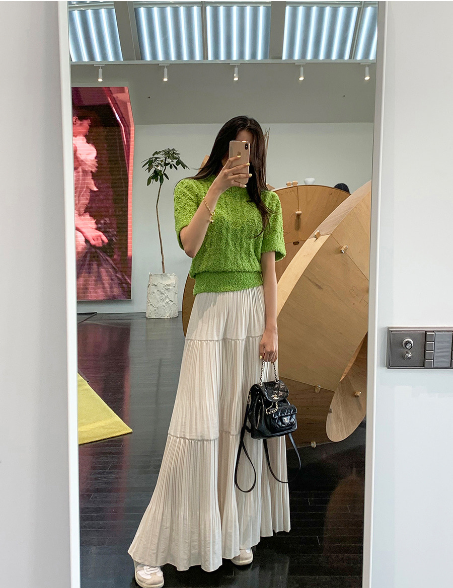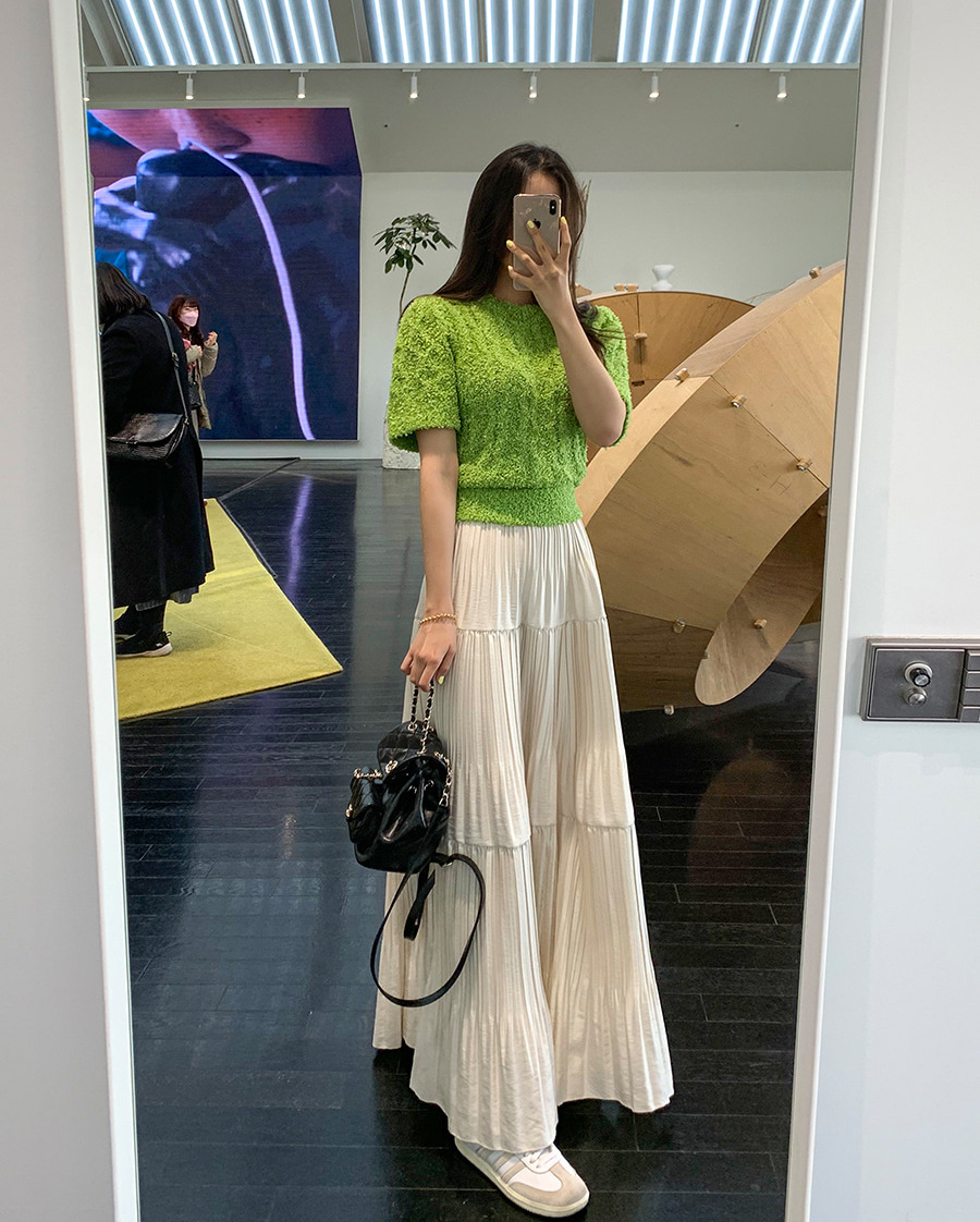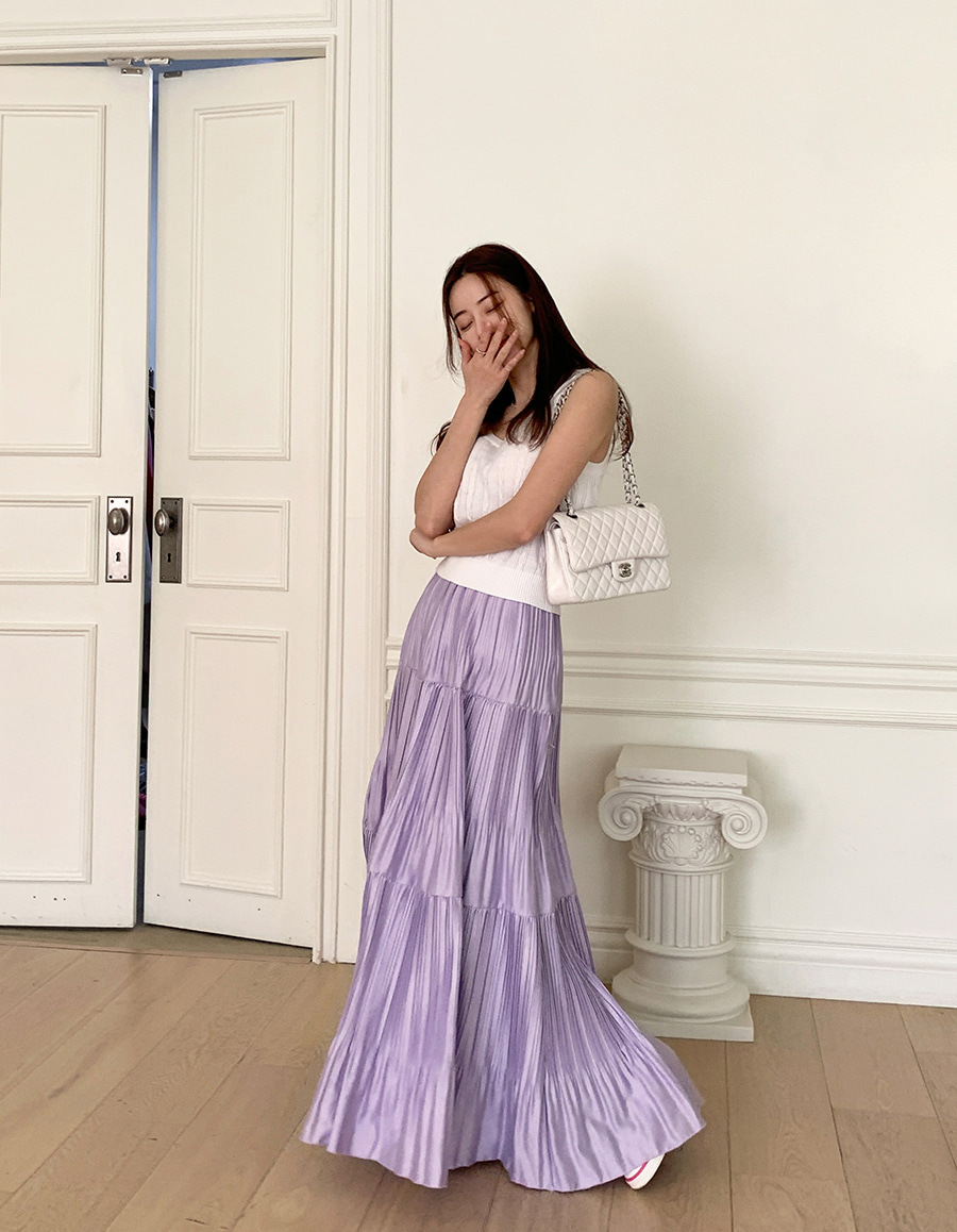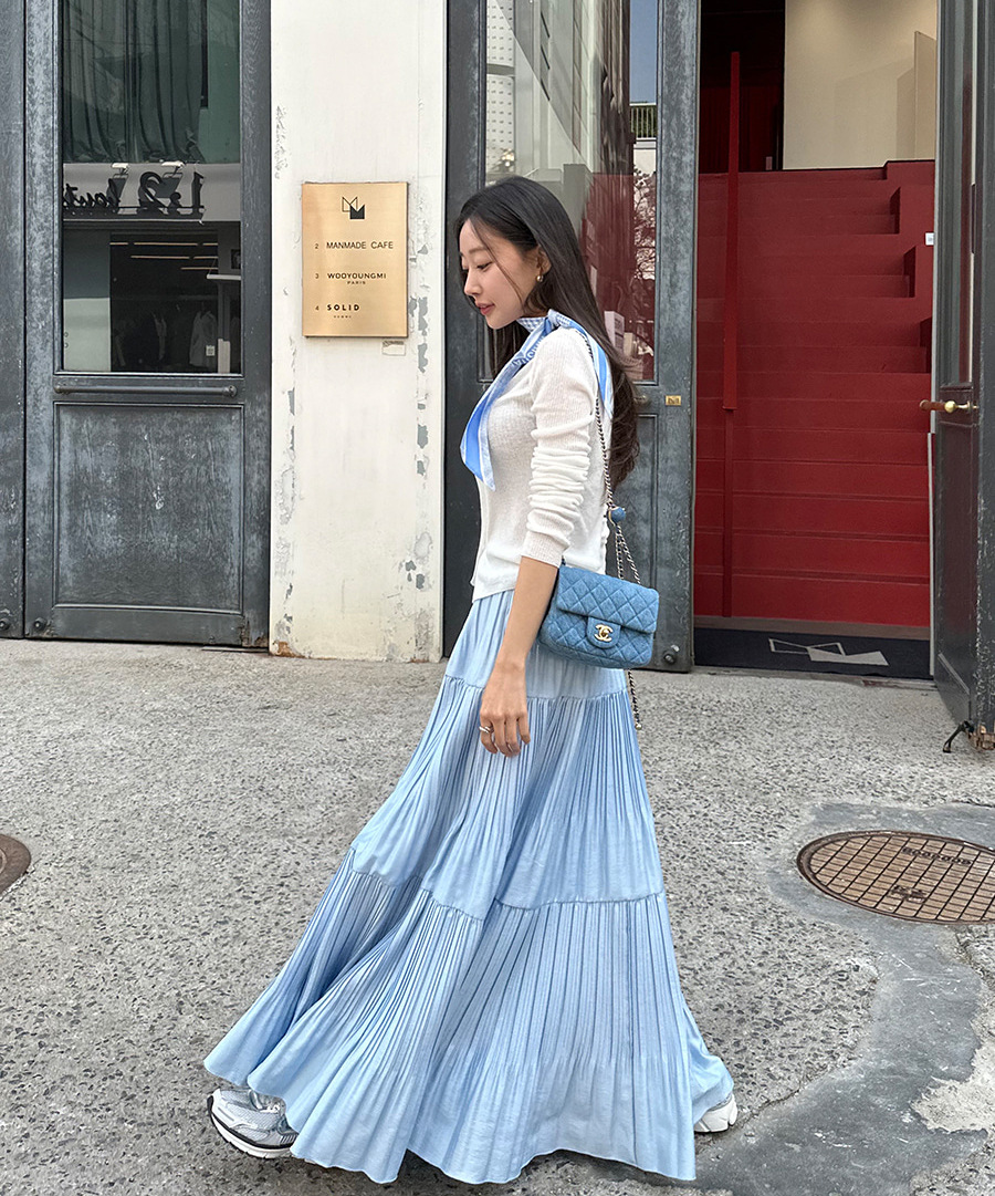 크기 업데이트 부드러운 기질 높은 허리 슬리밍 불규칙한 디자인 대형 스윙 주름 치마 긴 치마 4 색