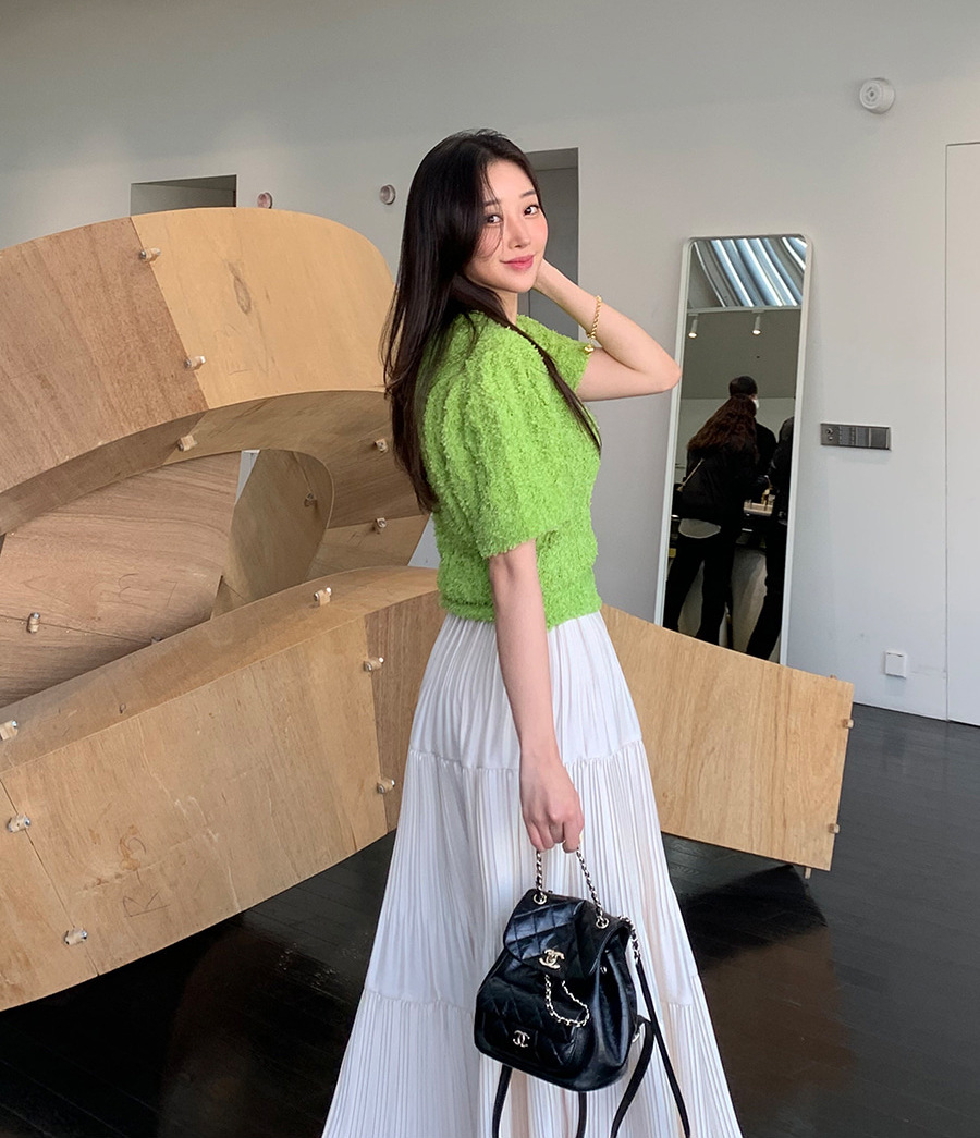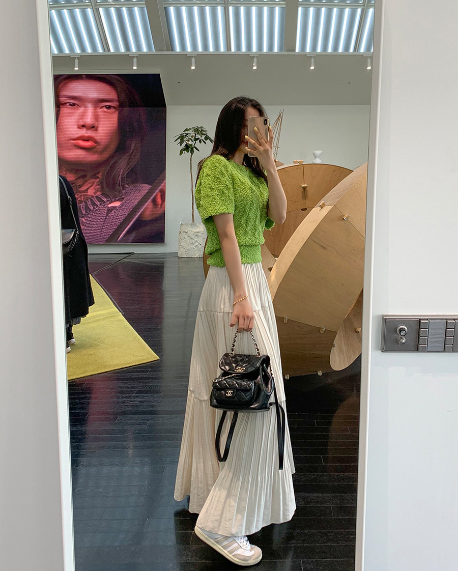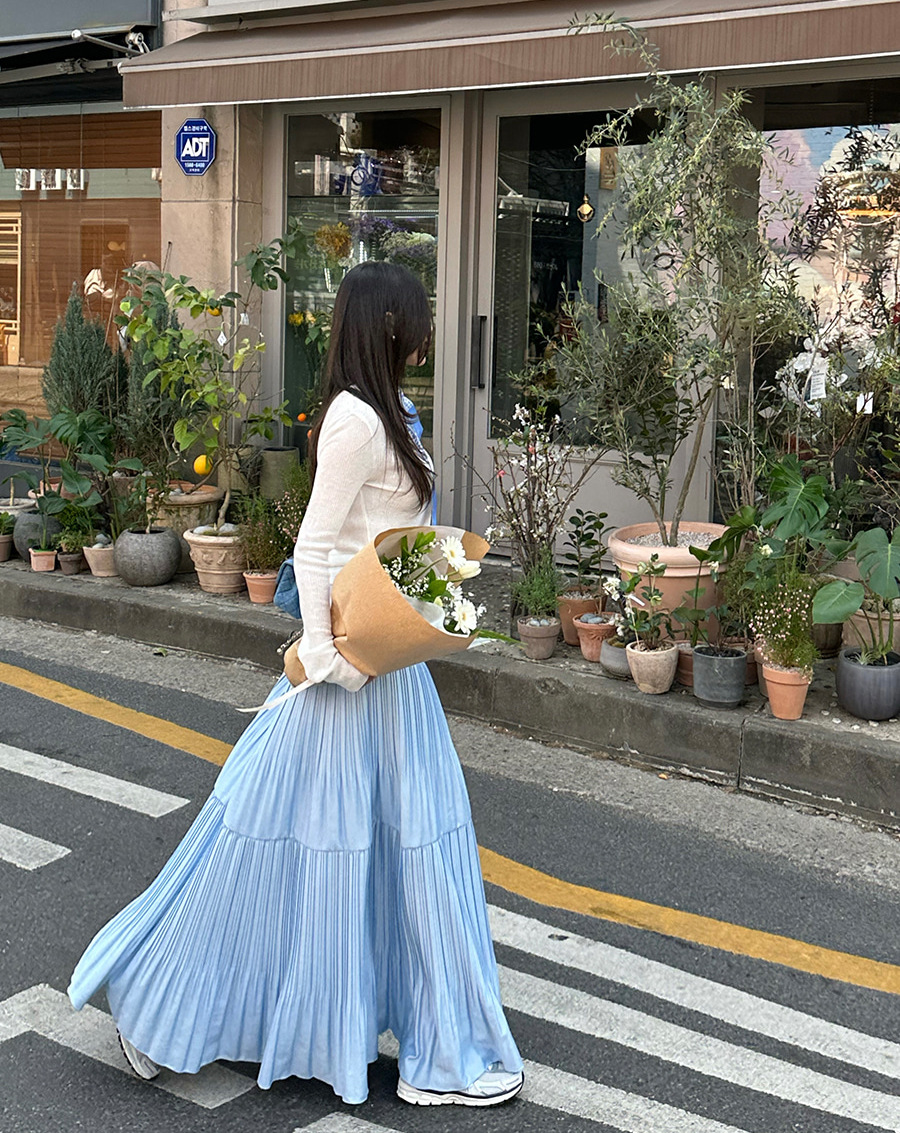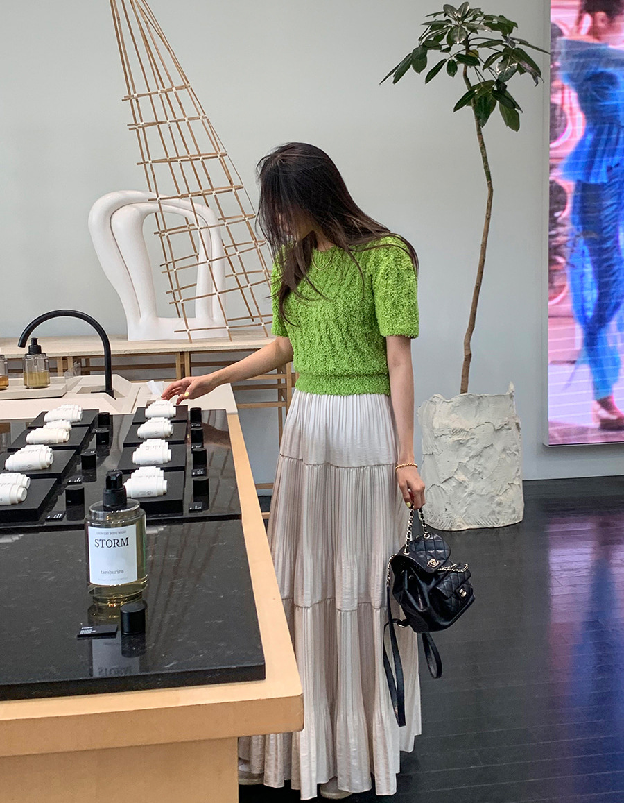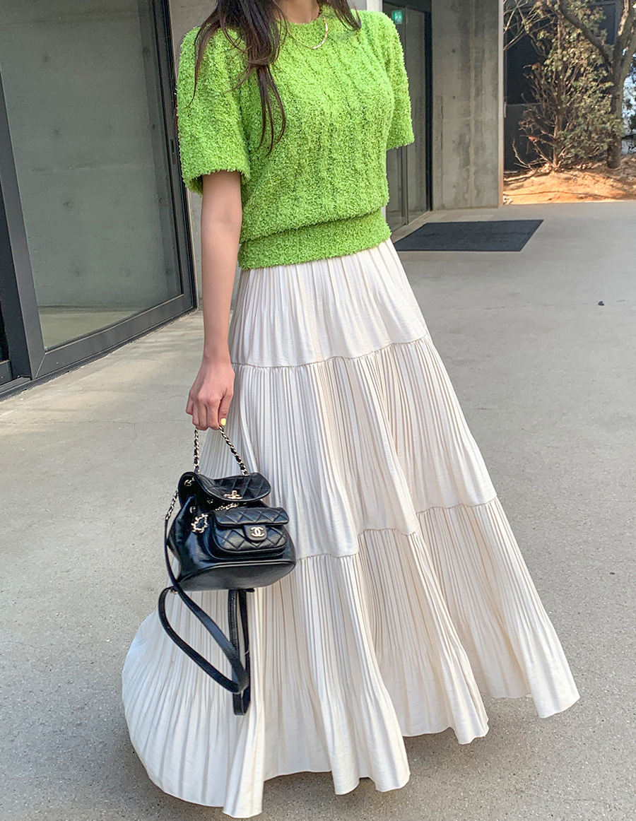 크기 업데이트 부드러운 기질 높은 허리 슬리밍 불규칙한 디자인 대형 스윙 주름 치마 긴 치마 4 색