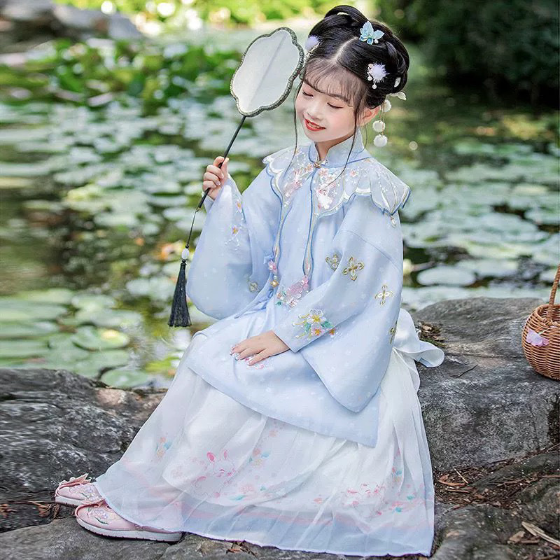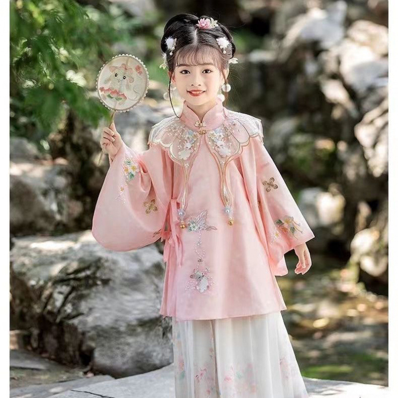 한푸 소녀 중국 스타일 당나라 세트 고대 스타일 슈퍼 요정 고대 세트 명나라 스타일 큰 소매 셔츠 세트 봄과 가을 어린 소녀 원피스