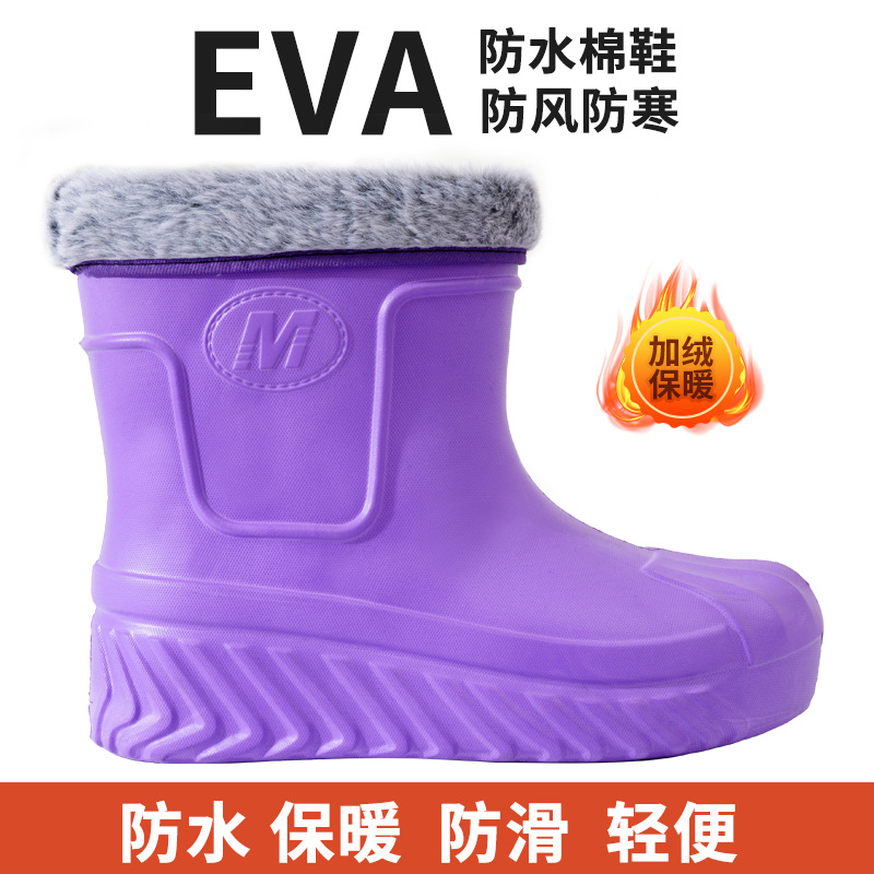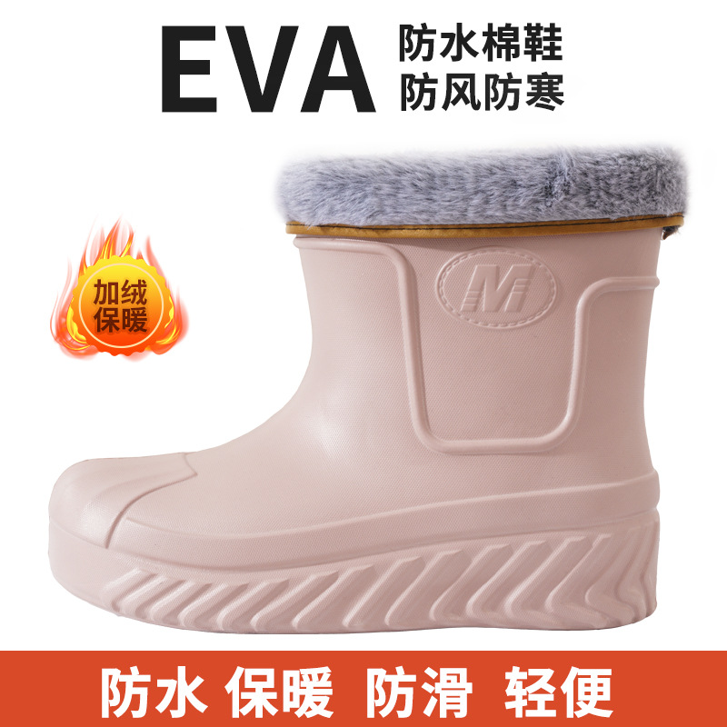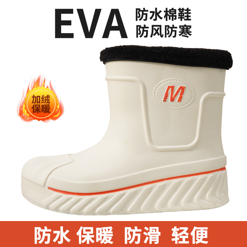 새로운 여성 EVA 방수 코튼 신발 따뜻한 미끄럼 방지 하이 탑 스노우 부츠 주방 야외 세차 콜드 스토리지 작업 신발스토어 가기